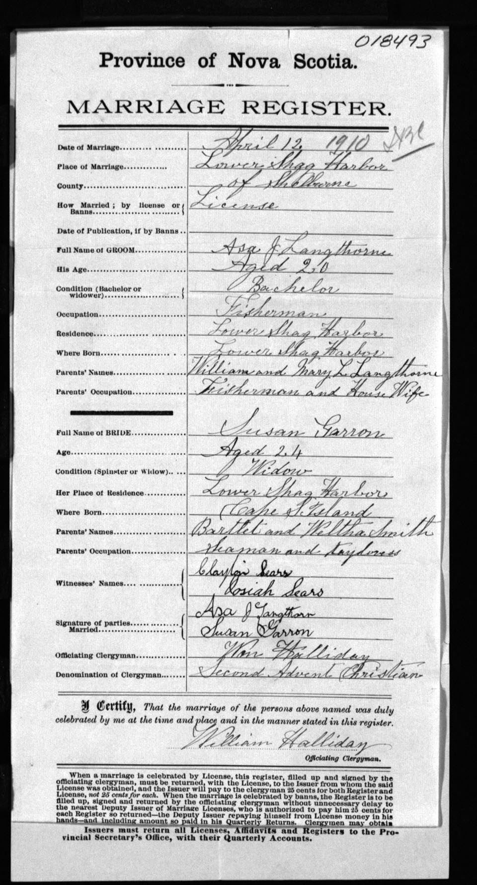 Registration: Year: 1910 number: 18493