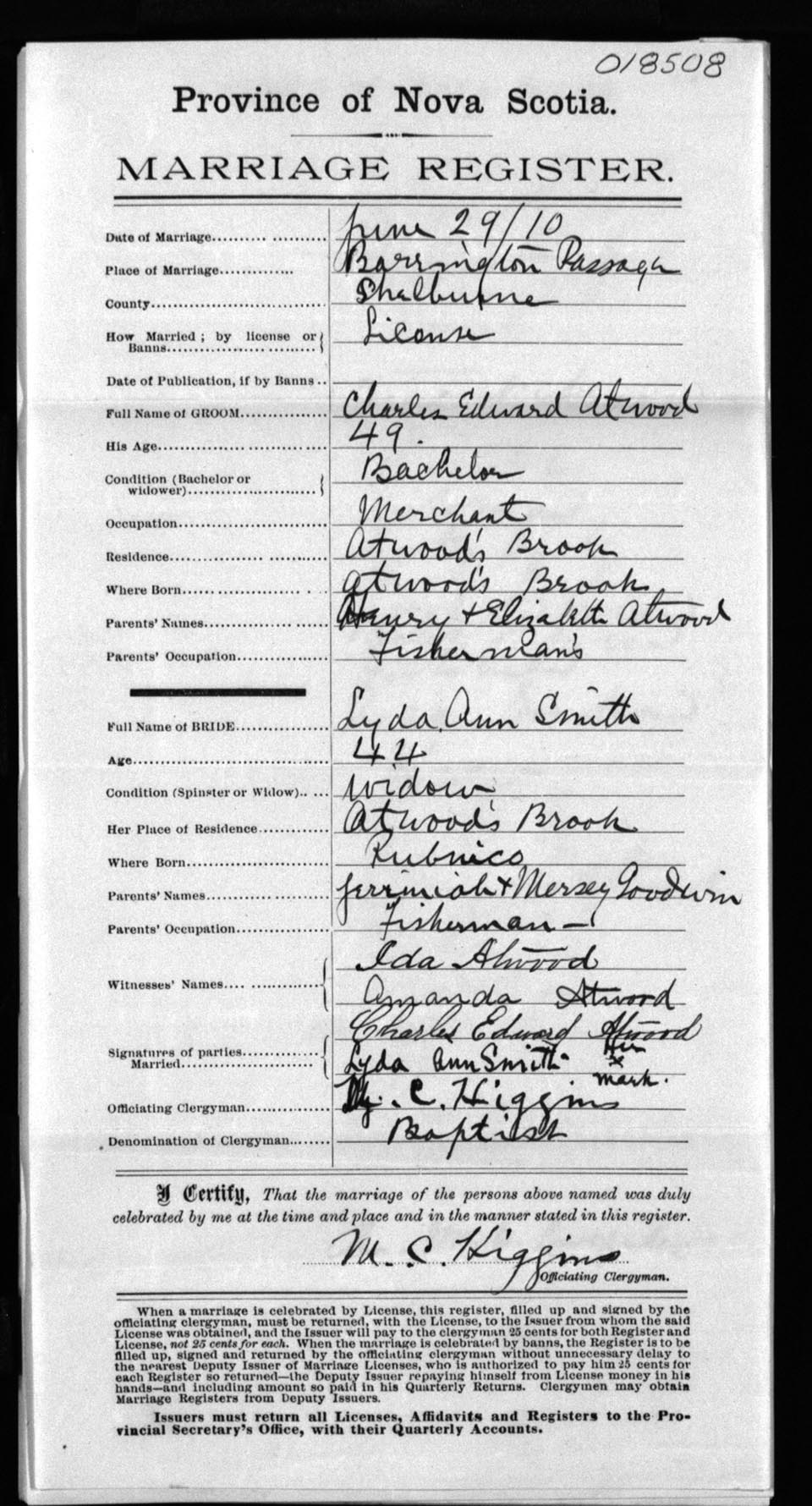 Registration: Year: 1910 number: 18508