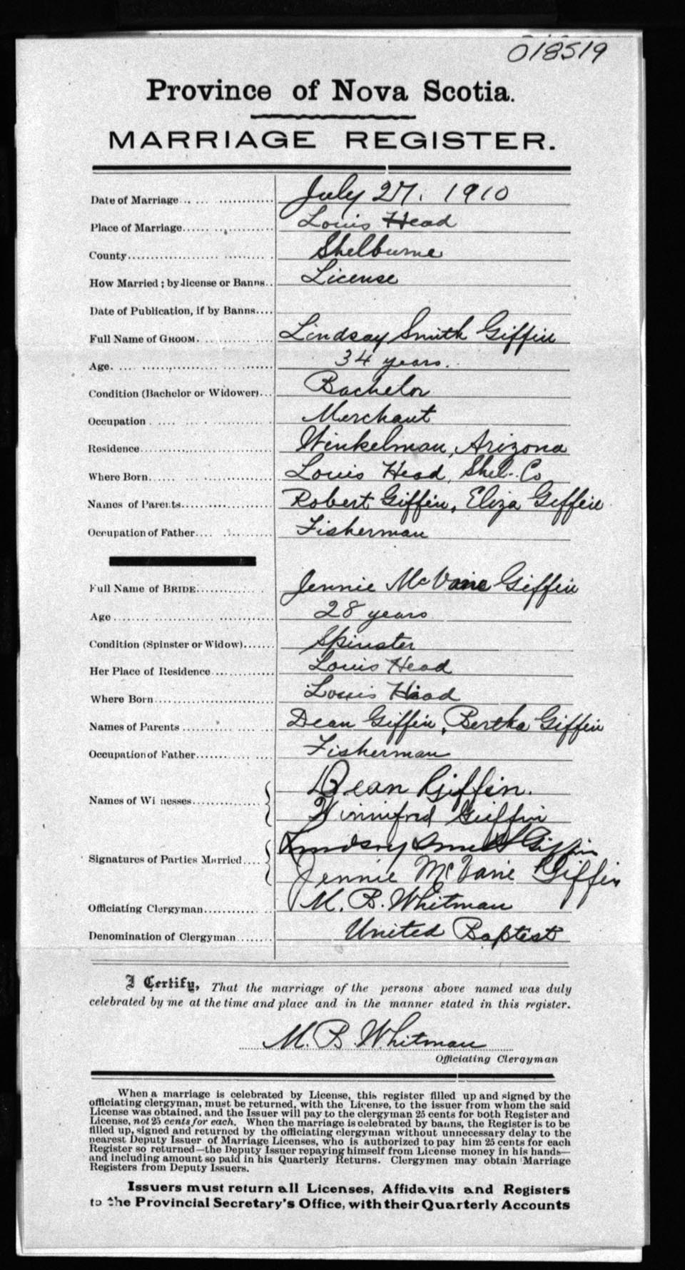 Registration: Year: 1910 number: 18519