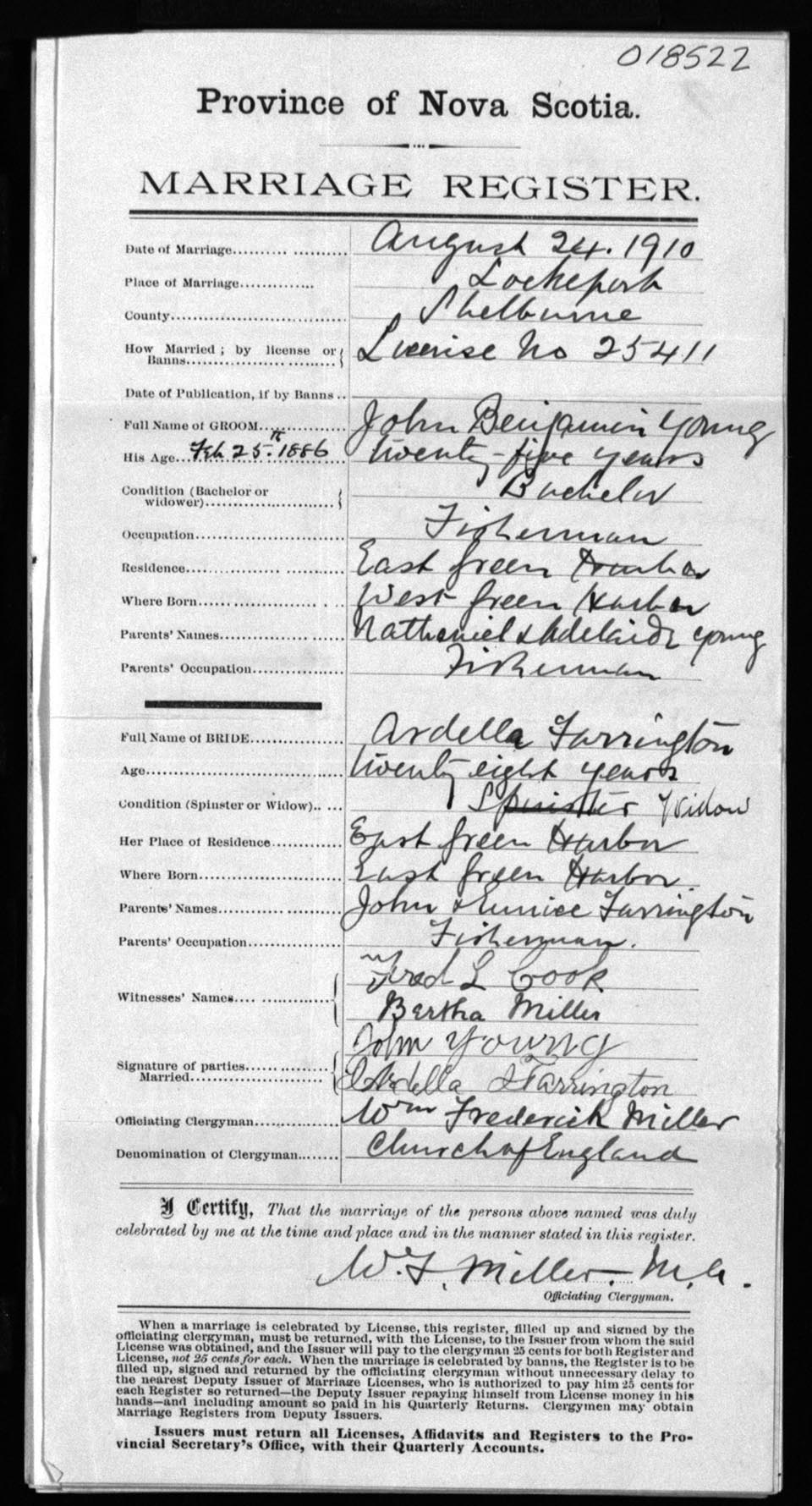 Registration: Year: 1910 number: 18522