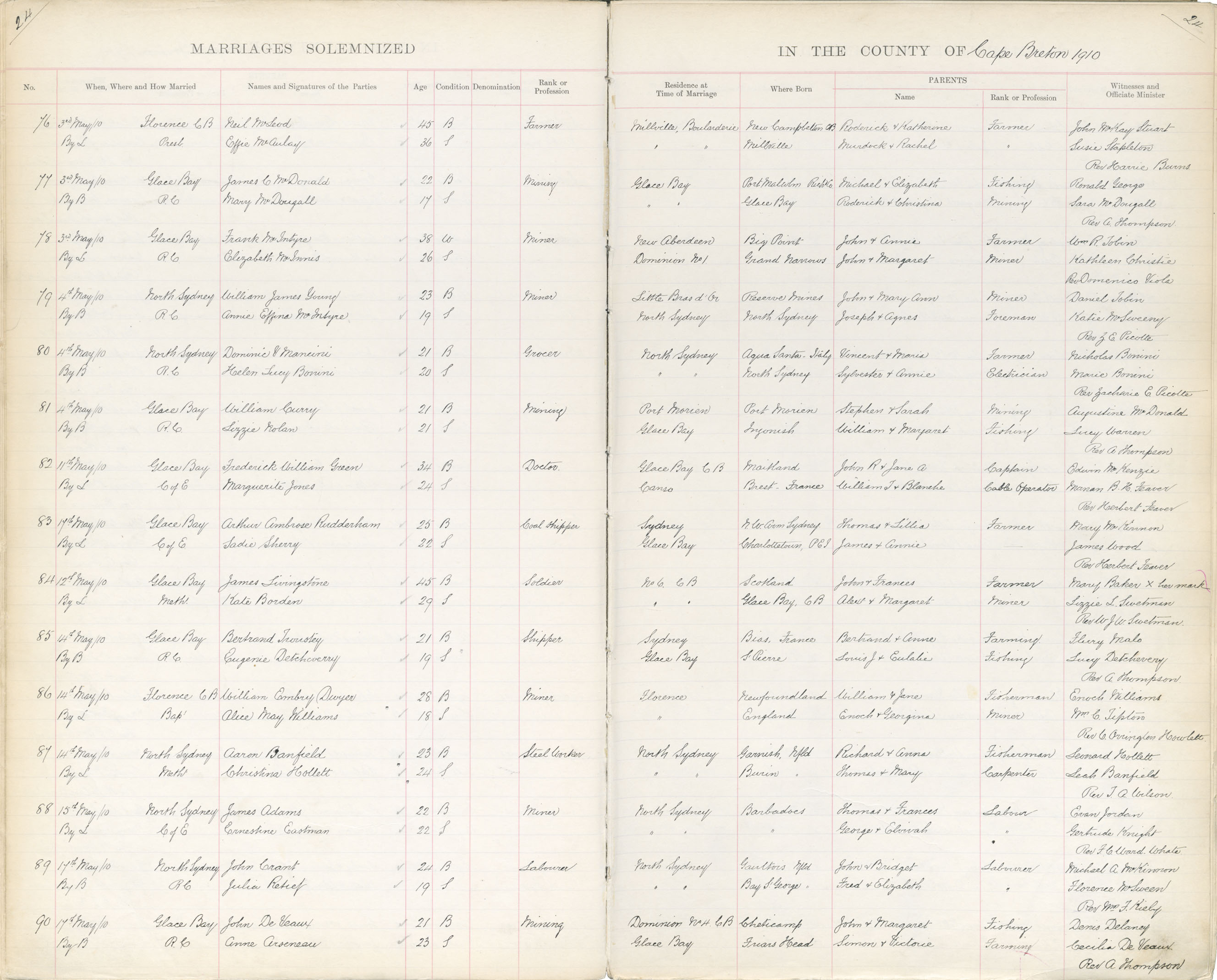 Registration: Year: 1910 book: 1841 page: 24 number: 76