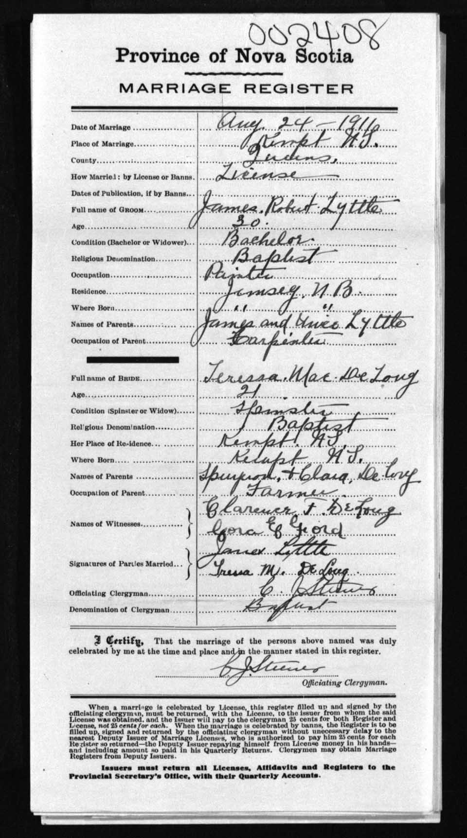Registration: Year: 1911 number: 2408