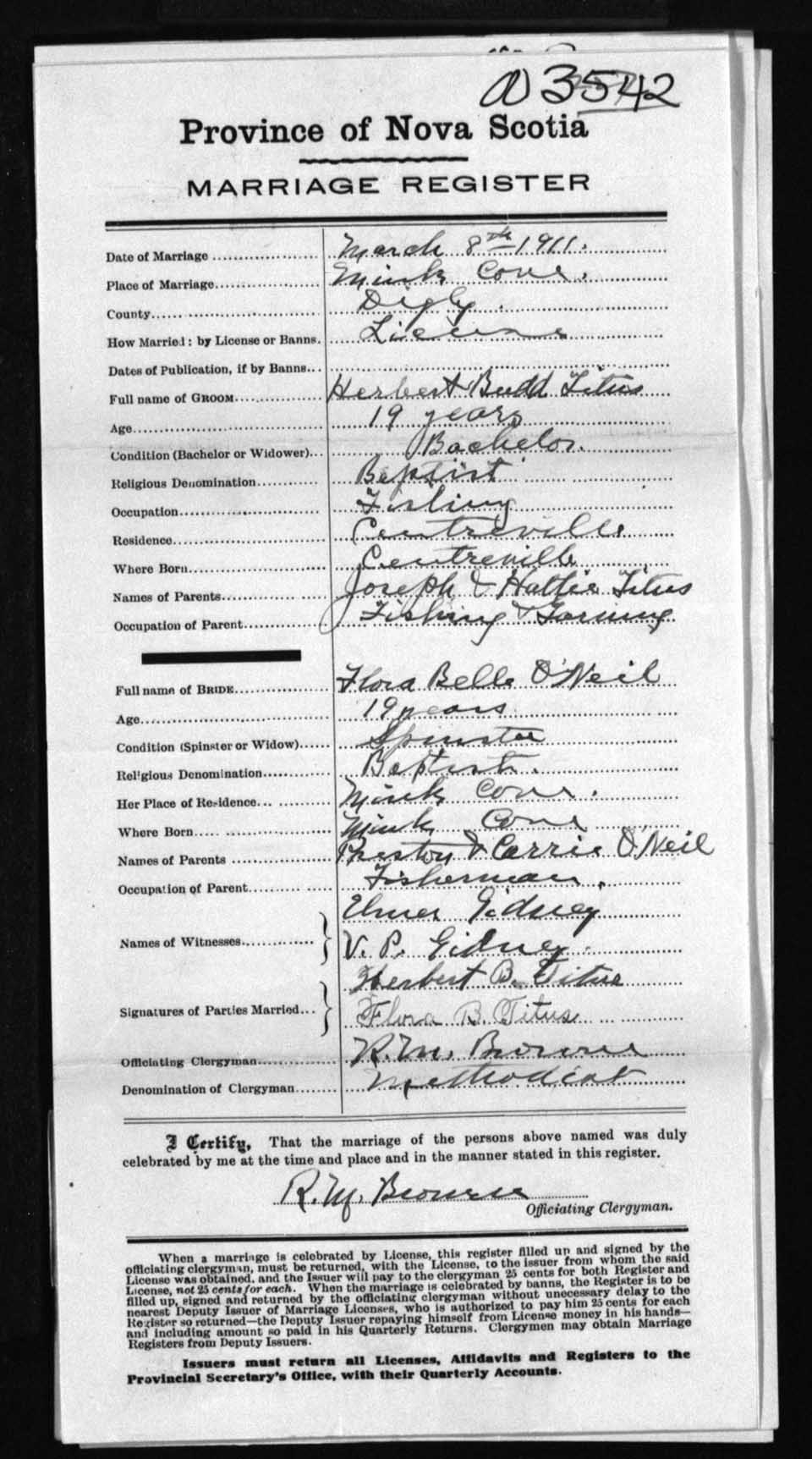 Registration: Year: 1911 number: 3542