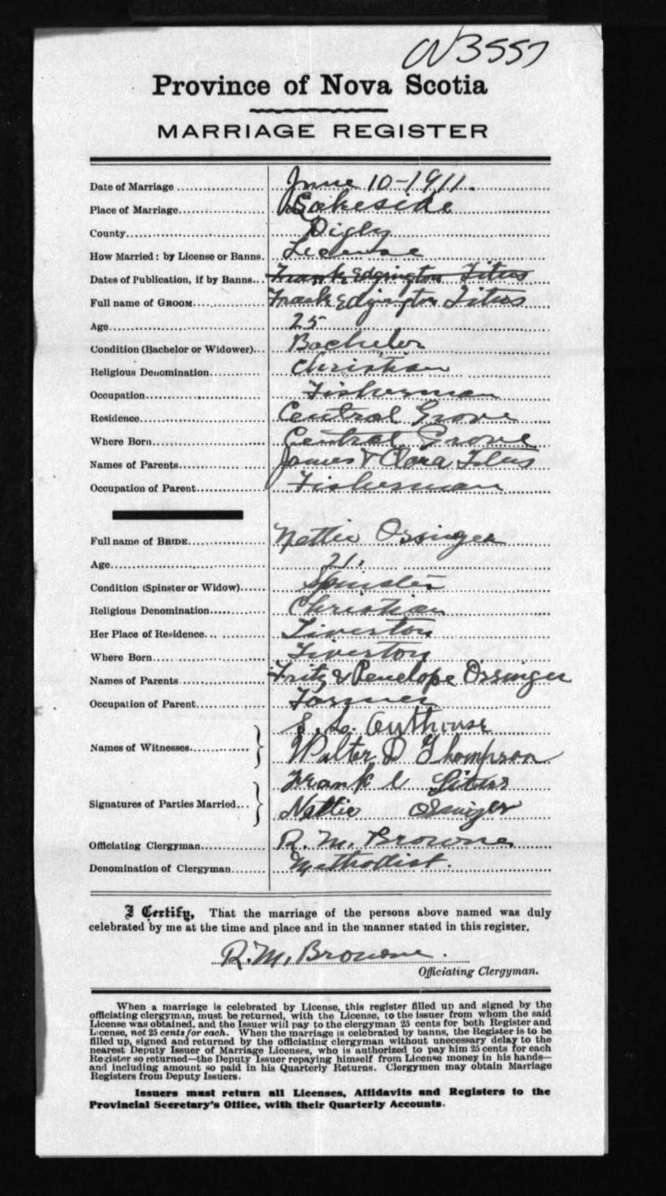 Registration: Year: 1911 number: 3557