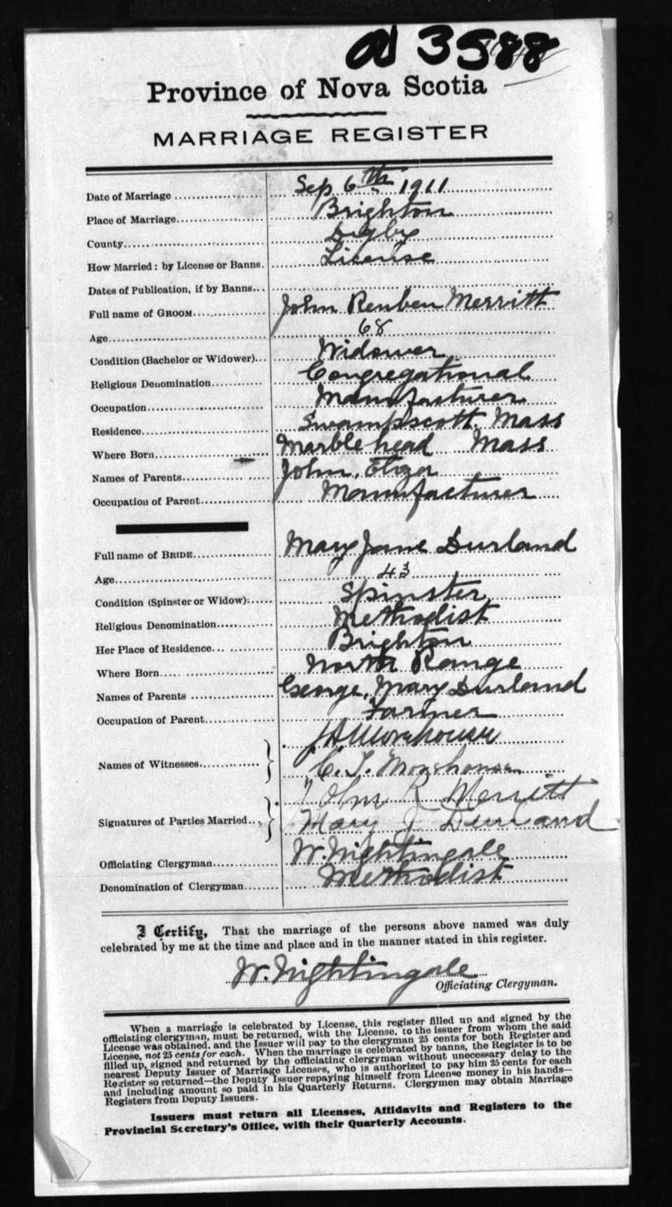 Registration: Year: 1911 number: 3588