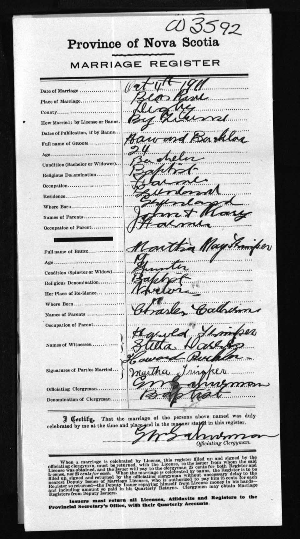 Registration: Year: 1911 number: 3592