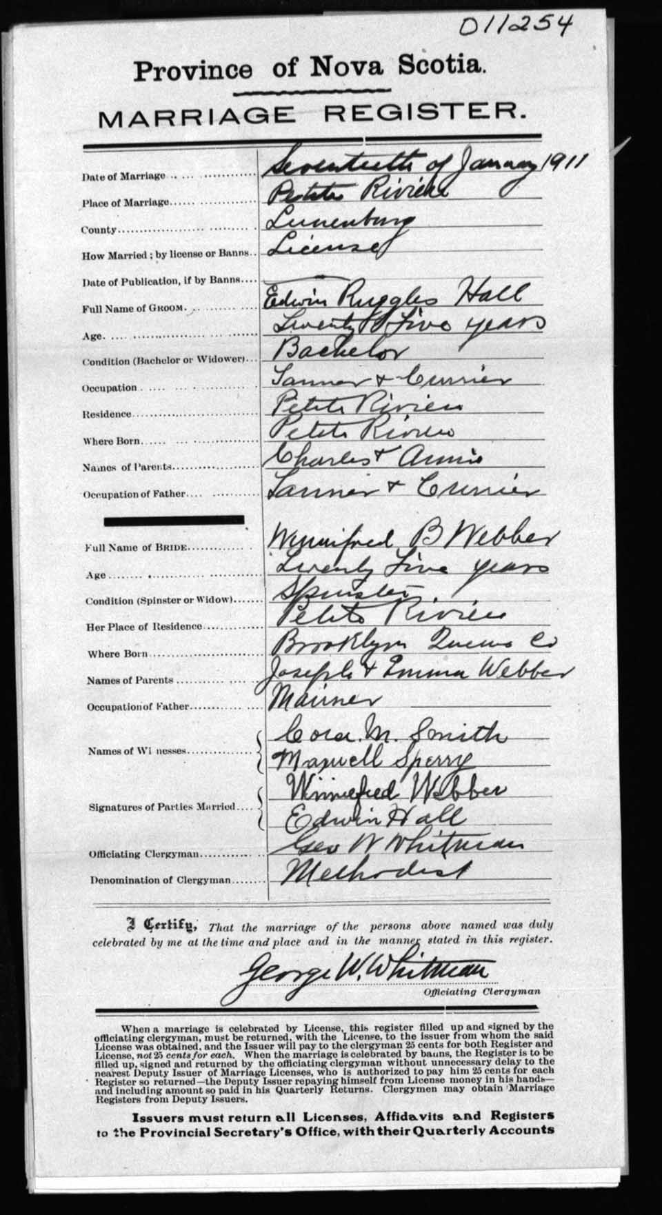 Registration: Year: 1911 number: 11254