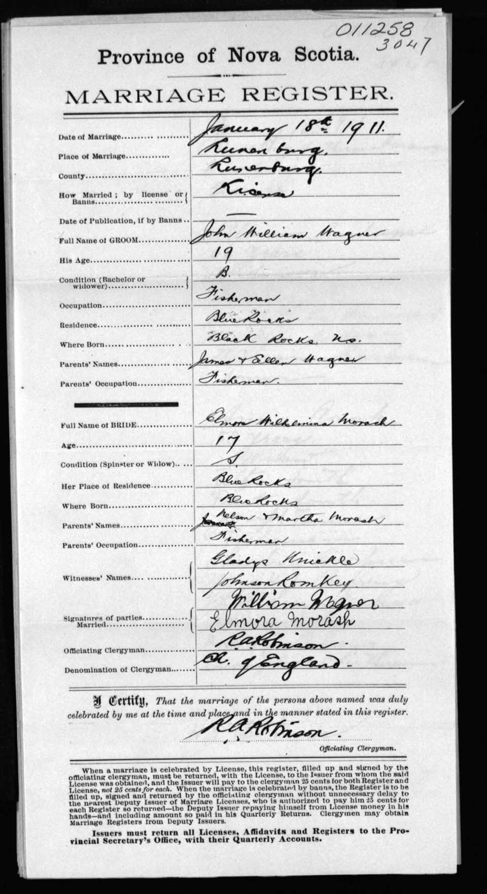 Registration: Year: 1911 number: 11258
