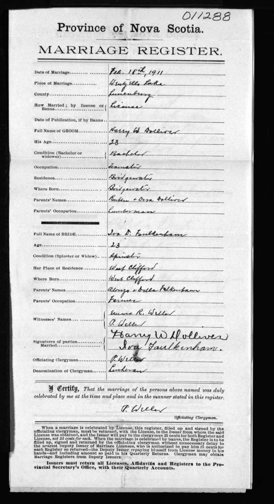 Registration: Year: 1911 number: 11288