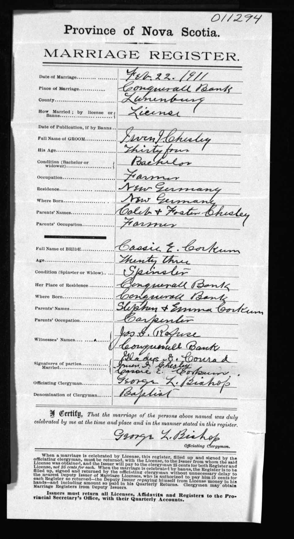 Registration: Year: 1911 number: 11294