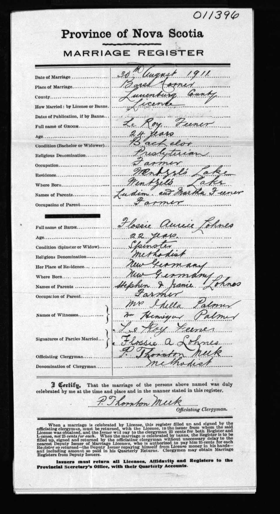 Registration: Year: 1911 number: 11396