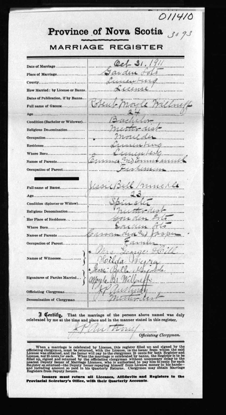 Registration: Year: 1911 number: 11410