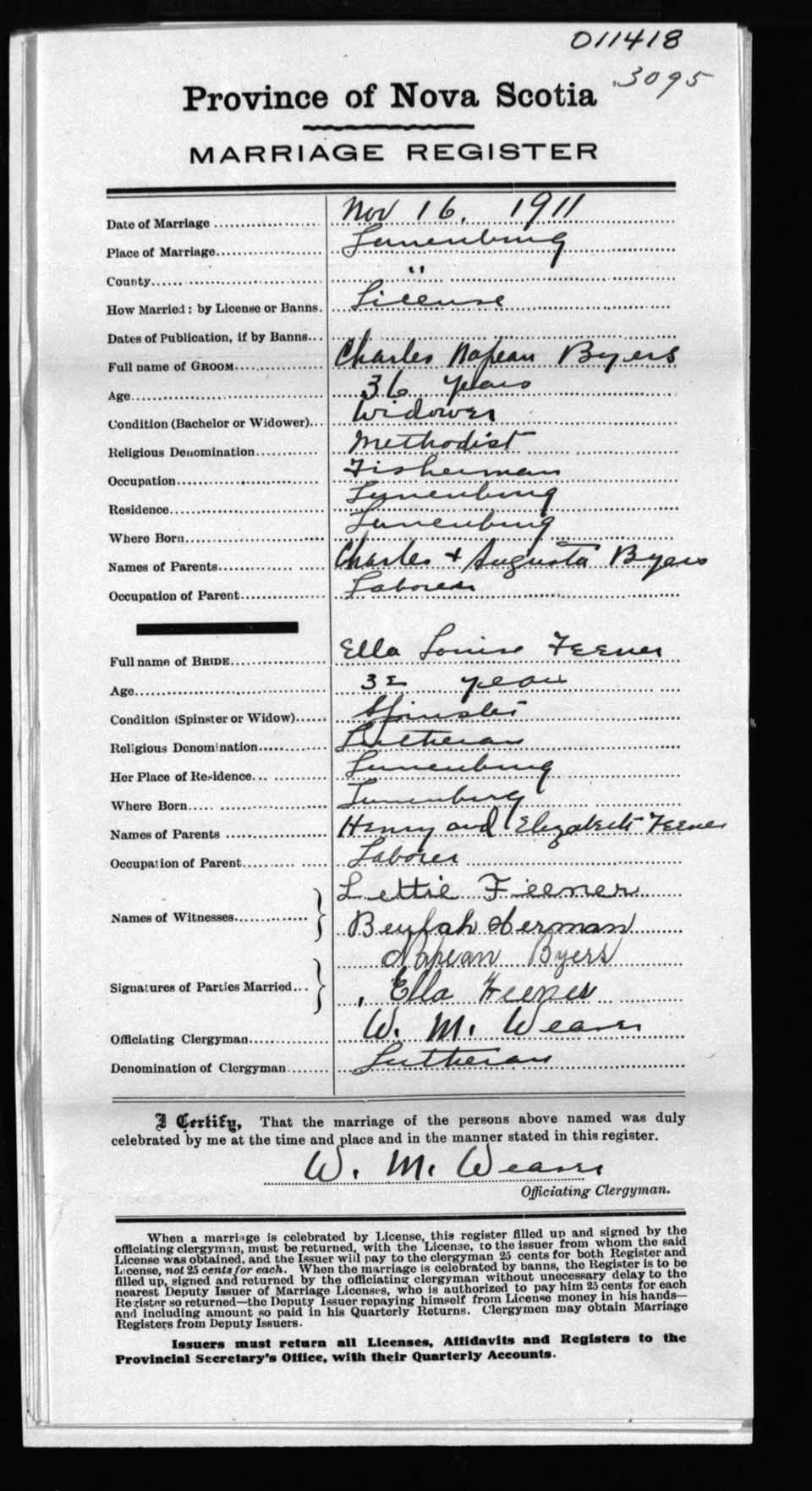 Registration: Year: 1911 number: 11418