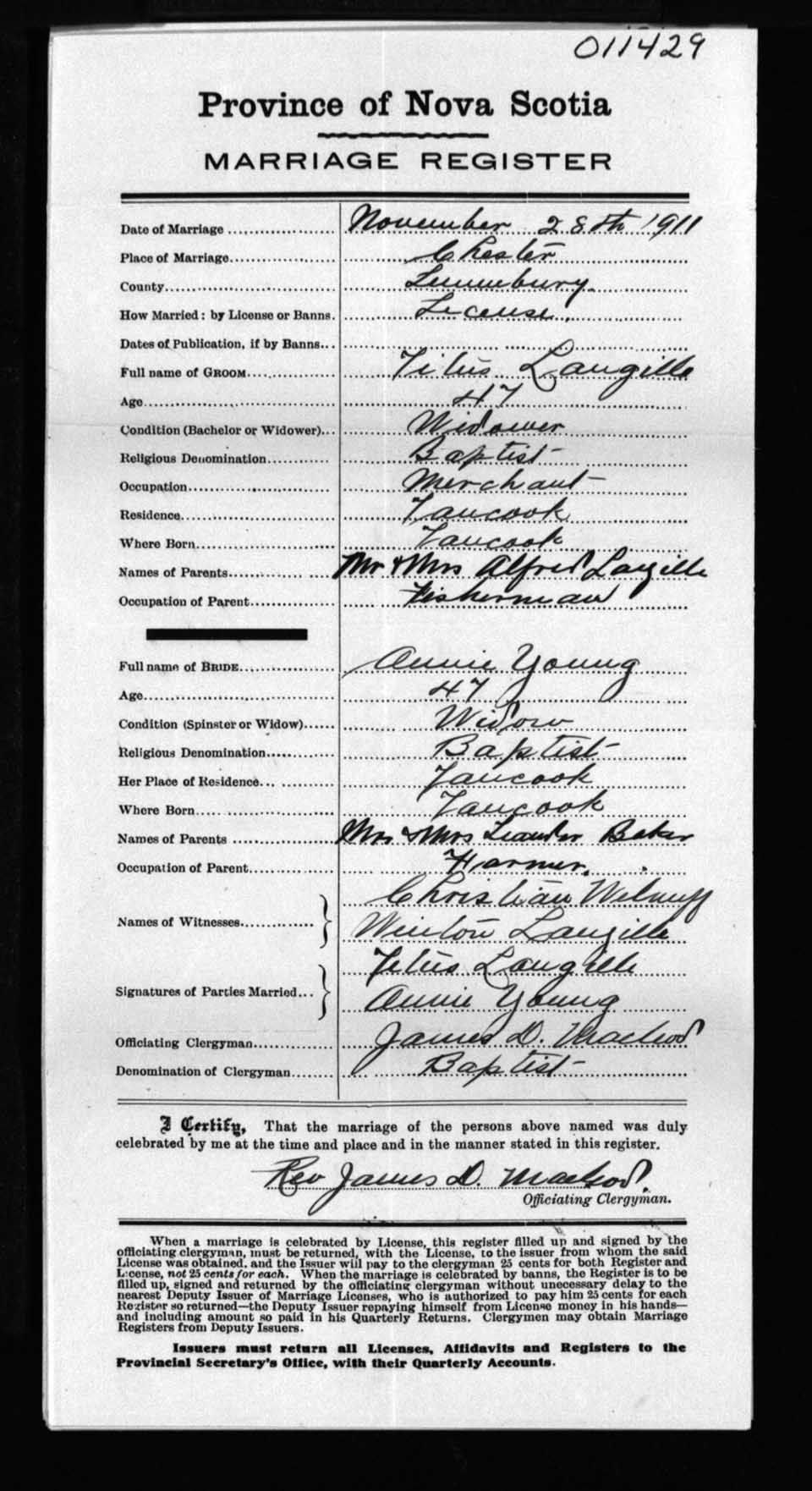 Registration: Year: 1911 number: 11429