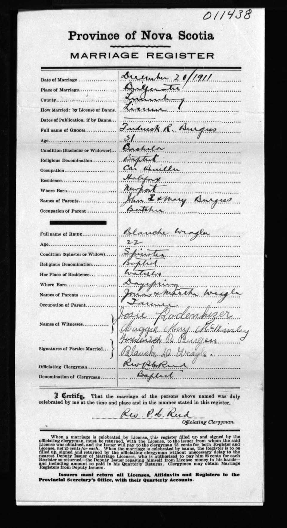 Registration: Year: 1911 number: 11438
