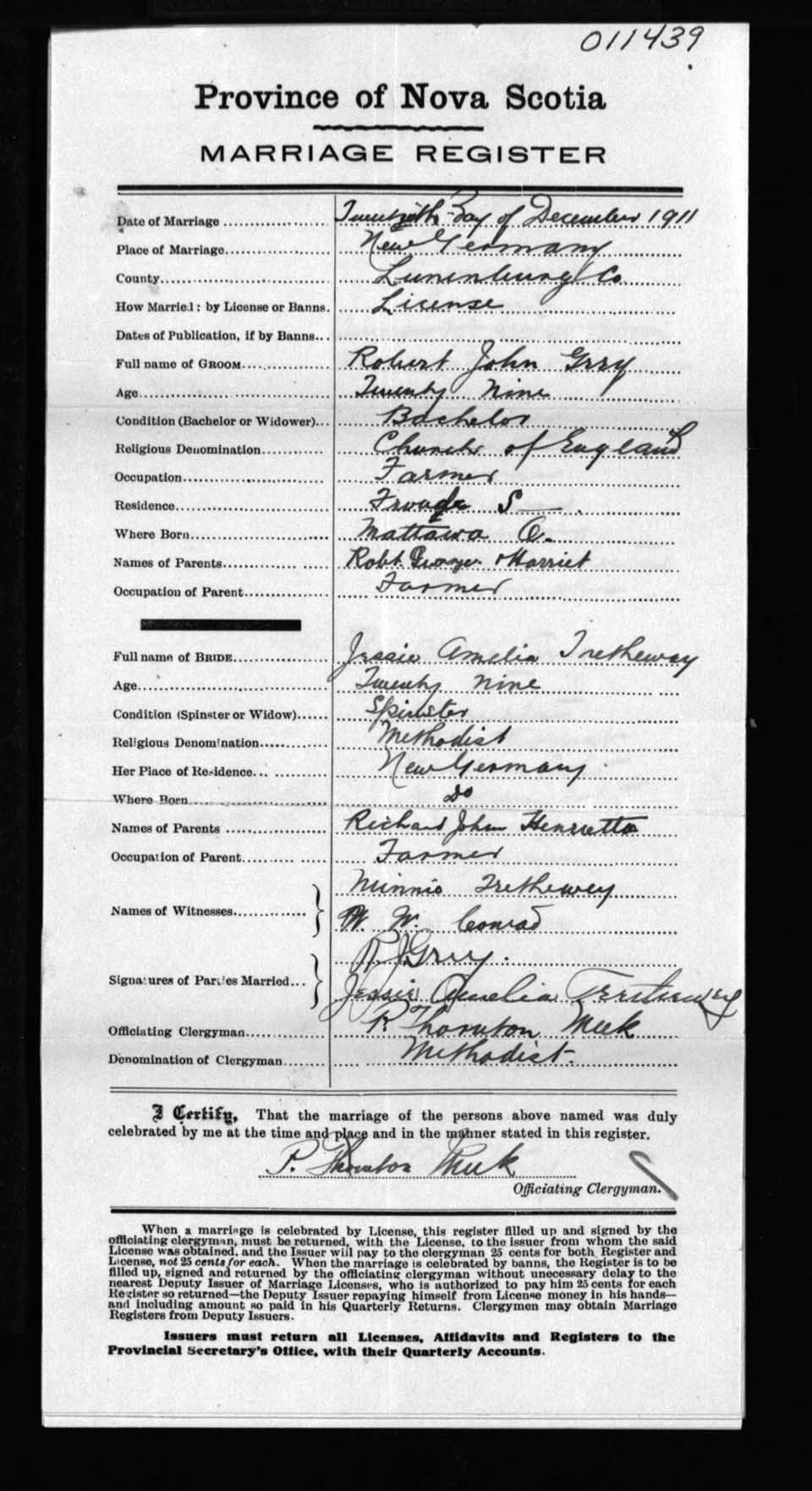 Registration: Year: 1911 number: 11439