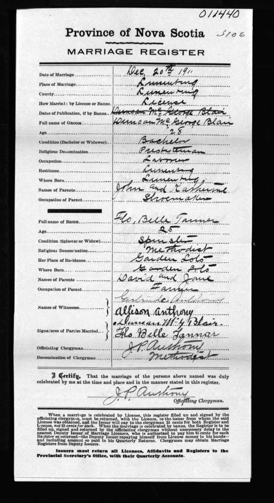 Registration: Year: 1911 number: 11440
