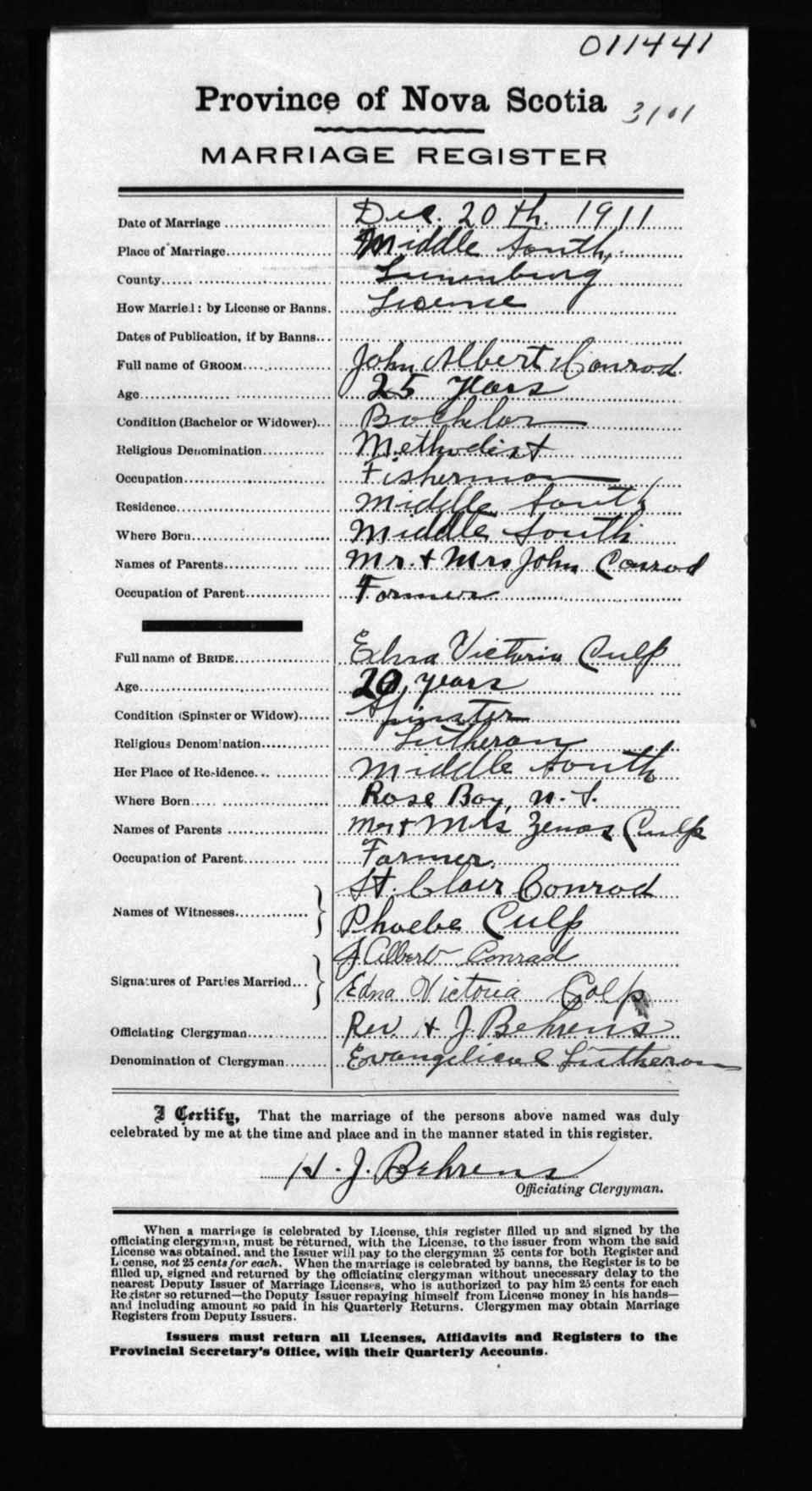 Registration: Year: 1911 number: 11441