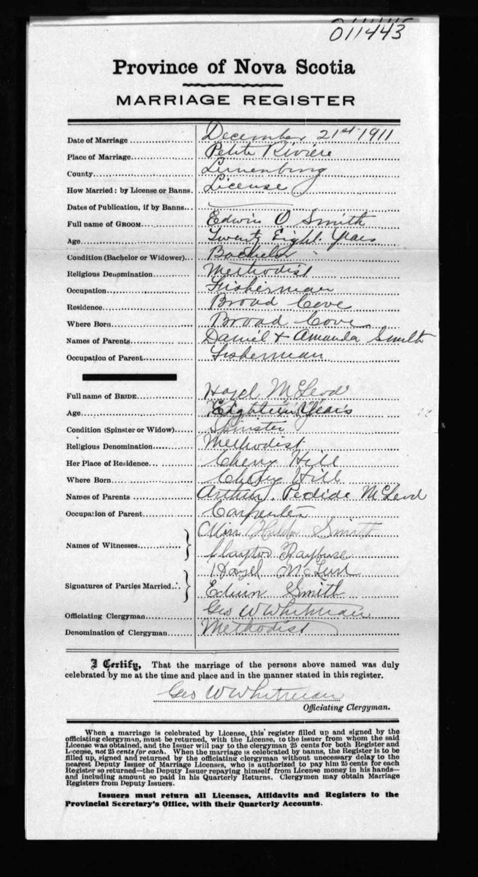 Registration: Year: 1911 number: 11443