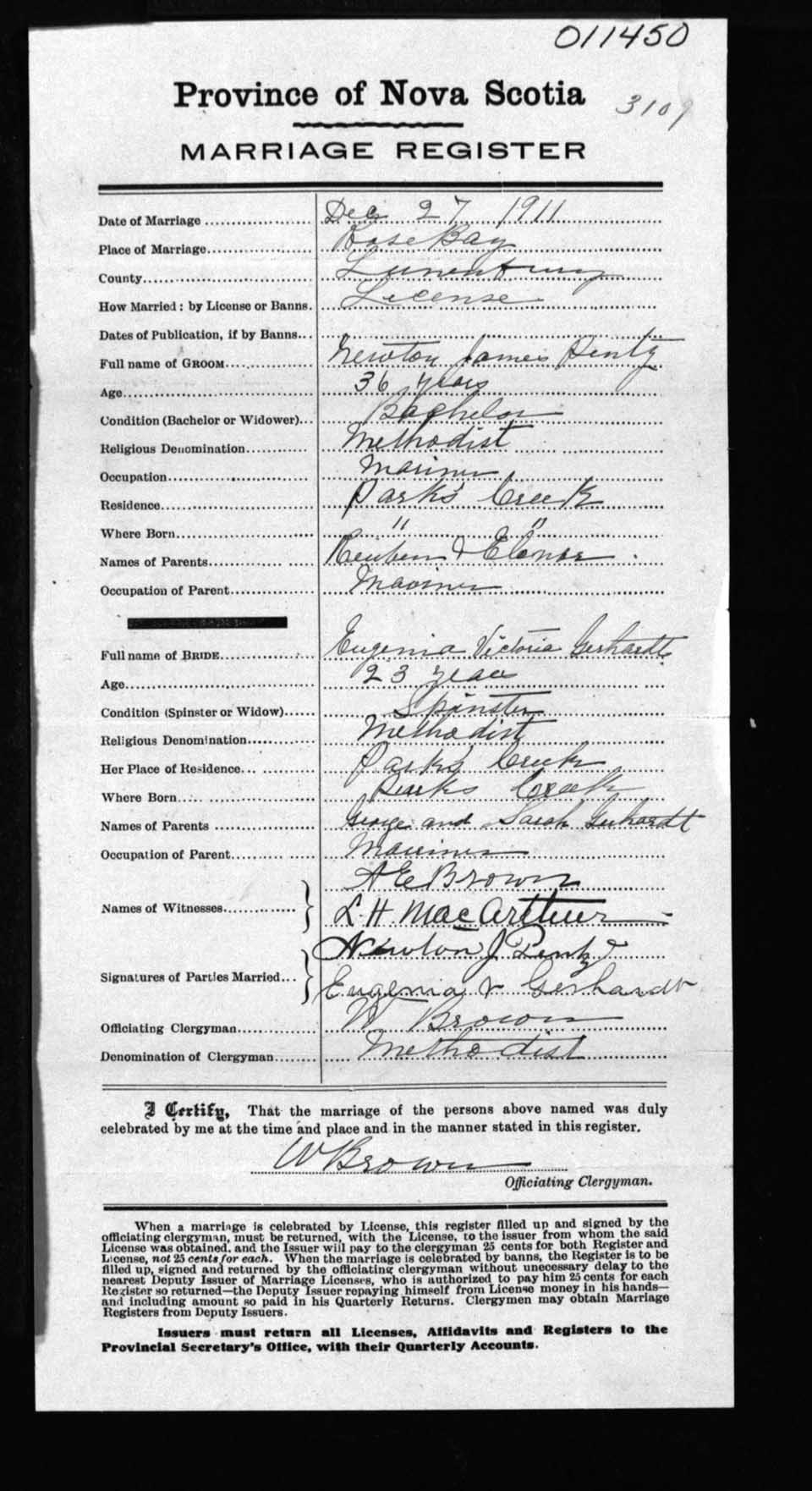 Registration: Year: 1911 number: 11450