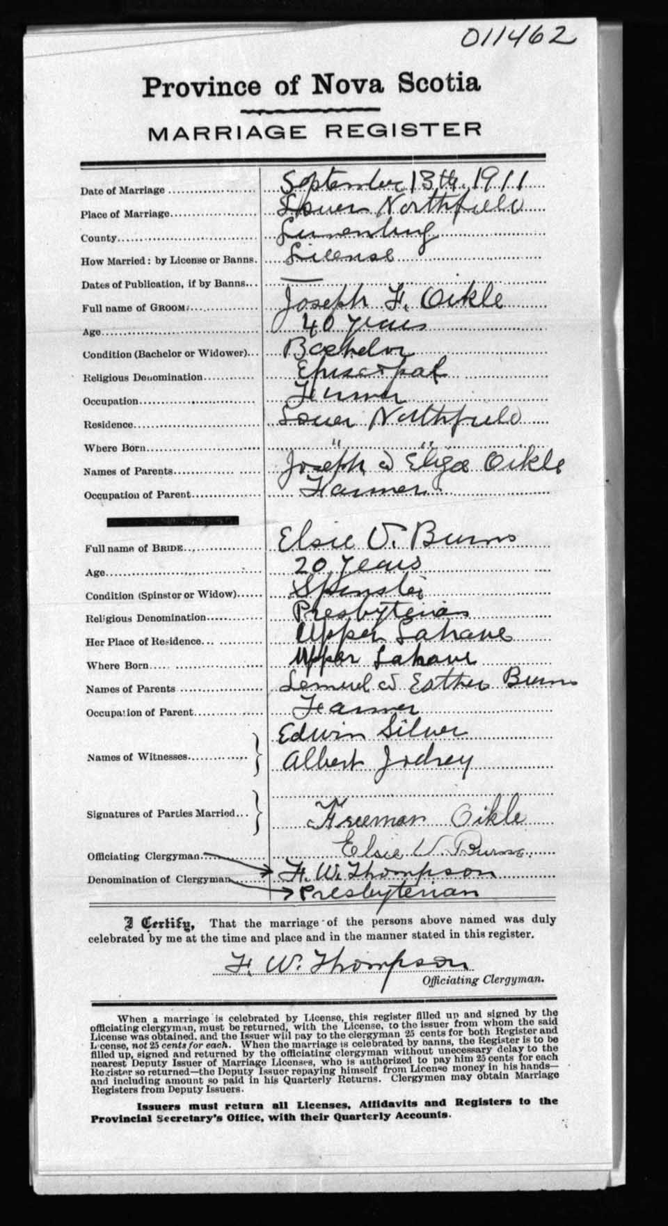 Registration: Year: 1911 number: 11462