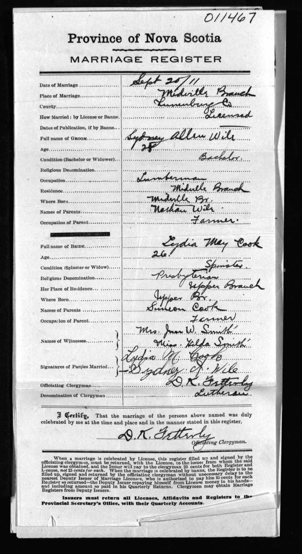 Registration: Year: 1911 number: 11467
