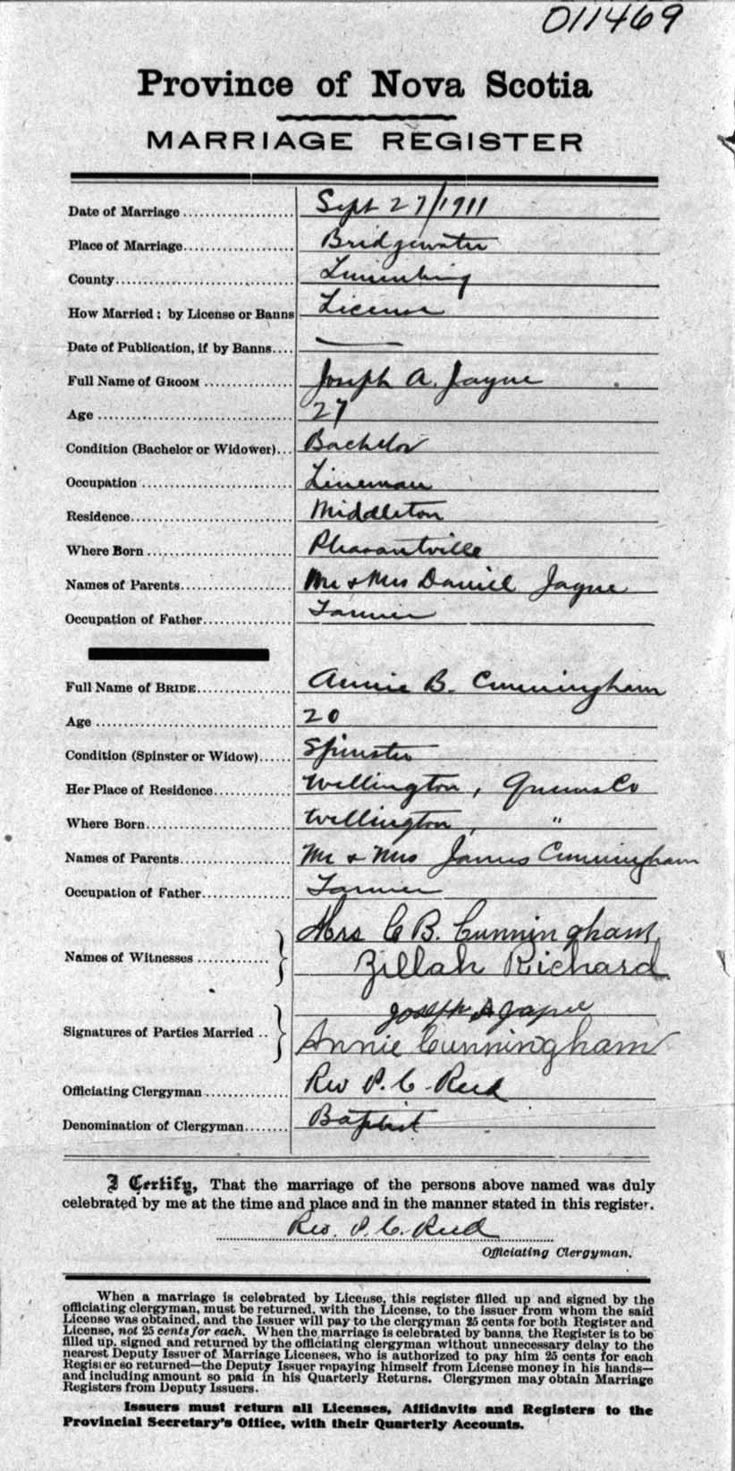 Registration: Year: 1911 number: 11469