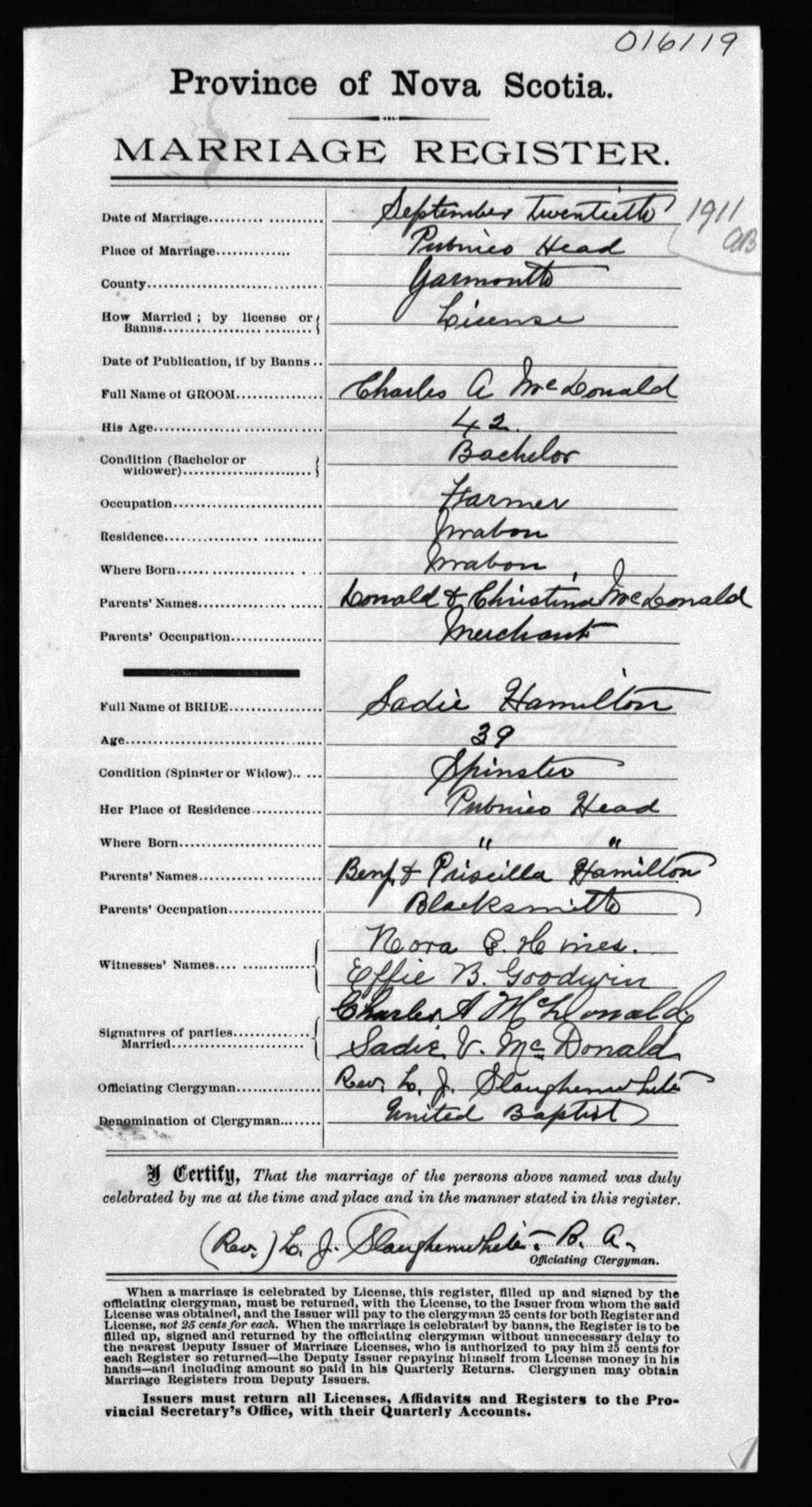 Registration: Year: 1911 number: 16119