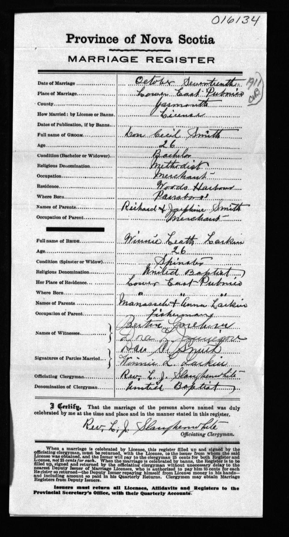 Registration: Year: 1911 number: 16134