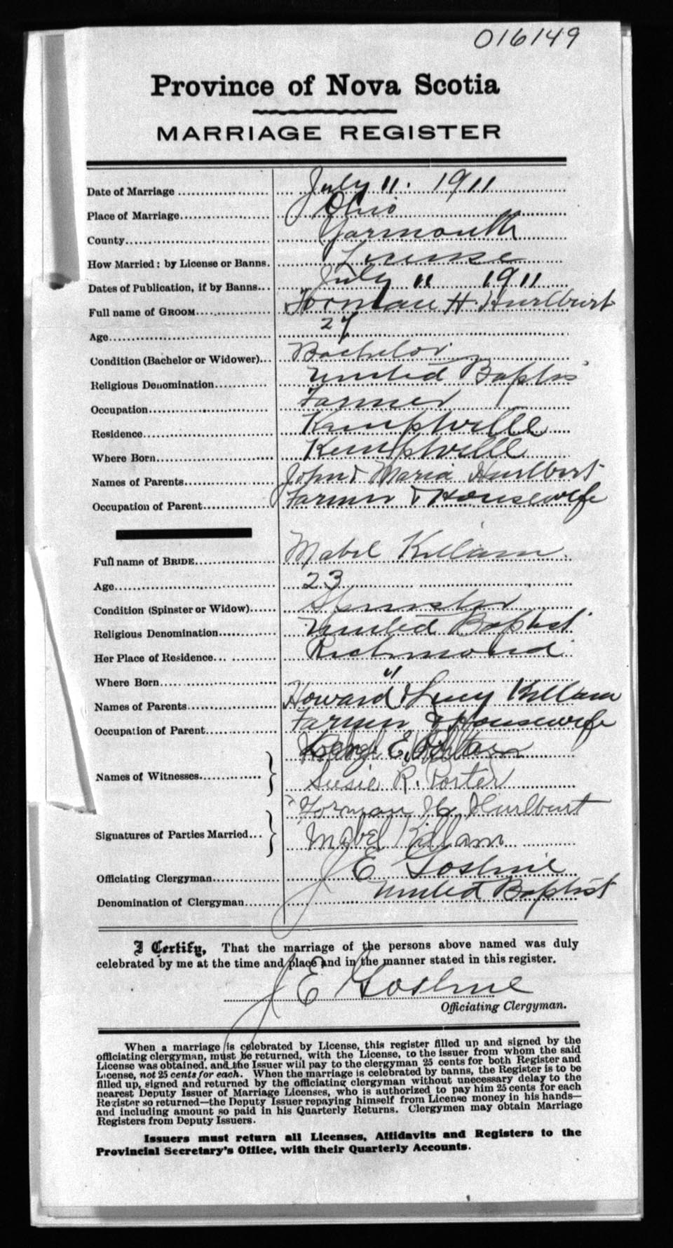 Registration: Year: 1911 number: 16149