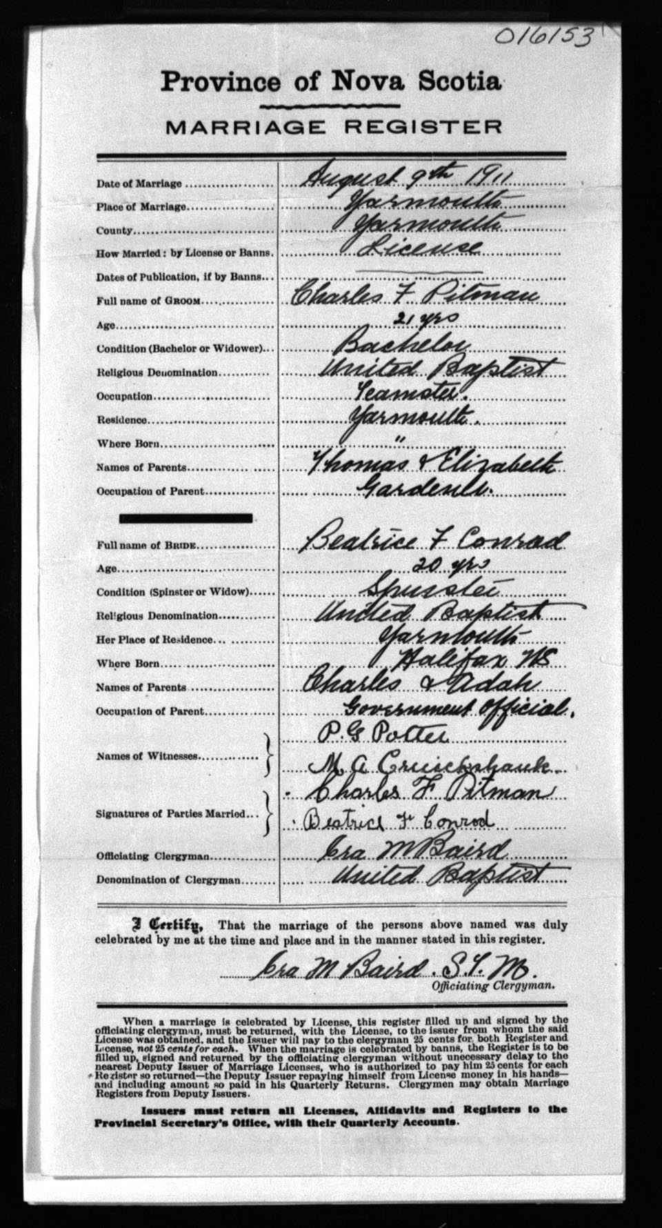 Registration: Year: 1911 number: 16153