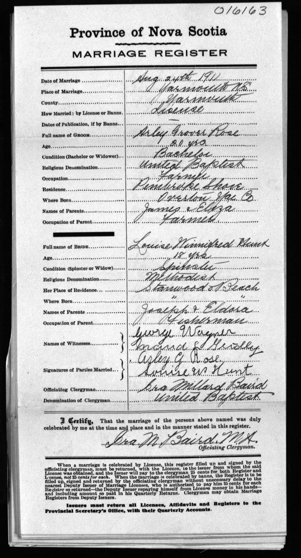 Registration: Year: 1911 number: 16163