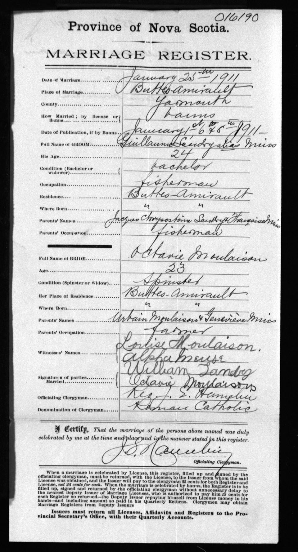 Registration: Year: 1911 number: 16190