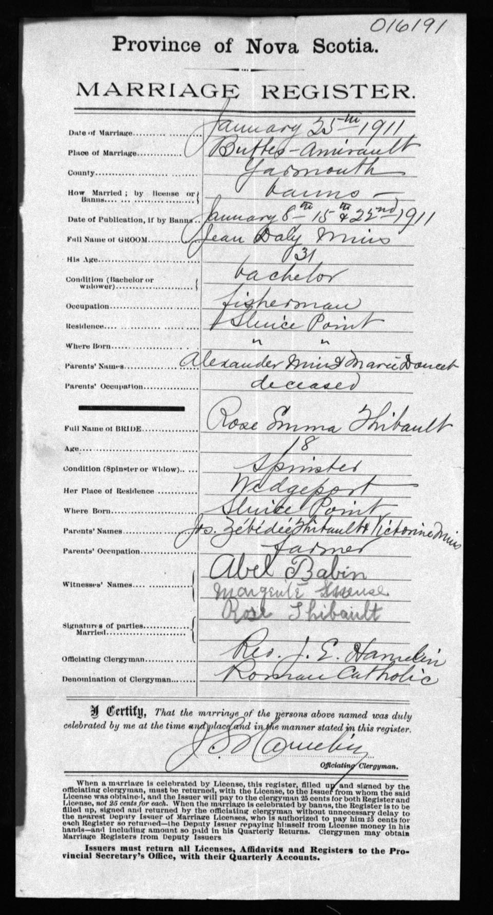 Registration: Year: 1911 number: 16191