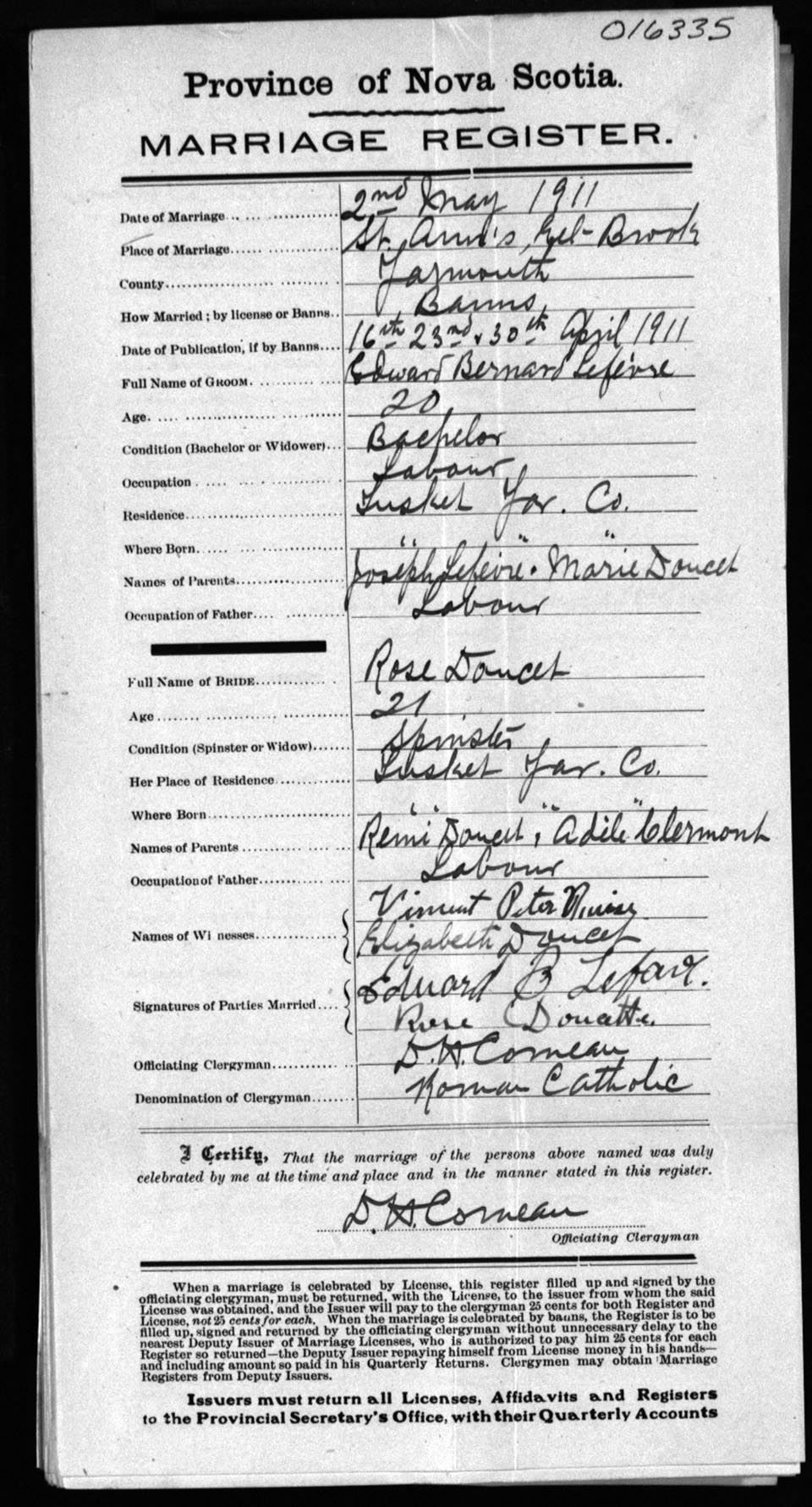 Registration: Year: 1911 number: 16335