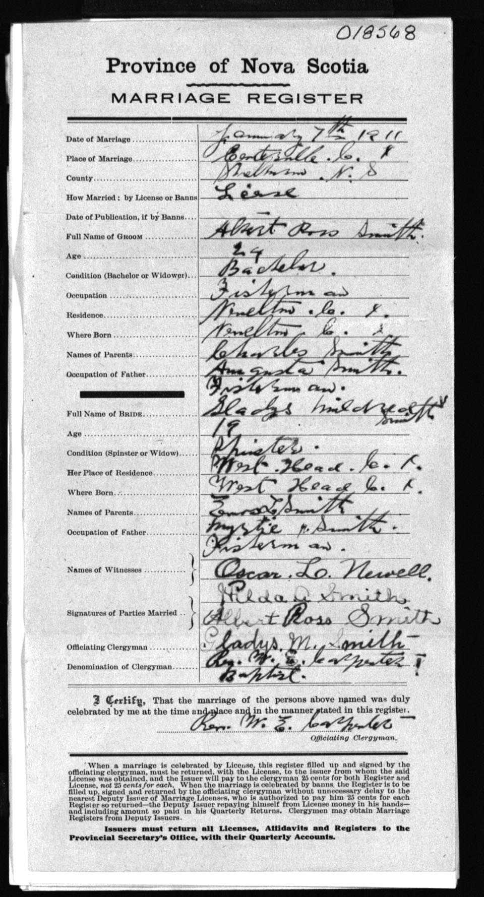 Registration: Year: 1911 number: 18568