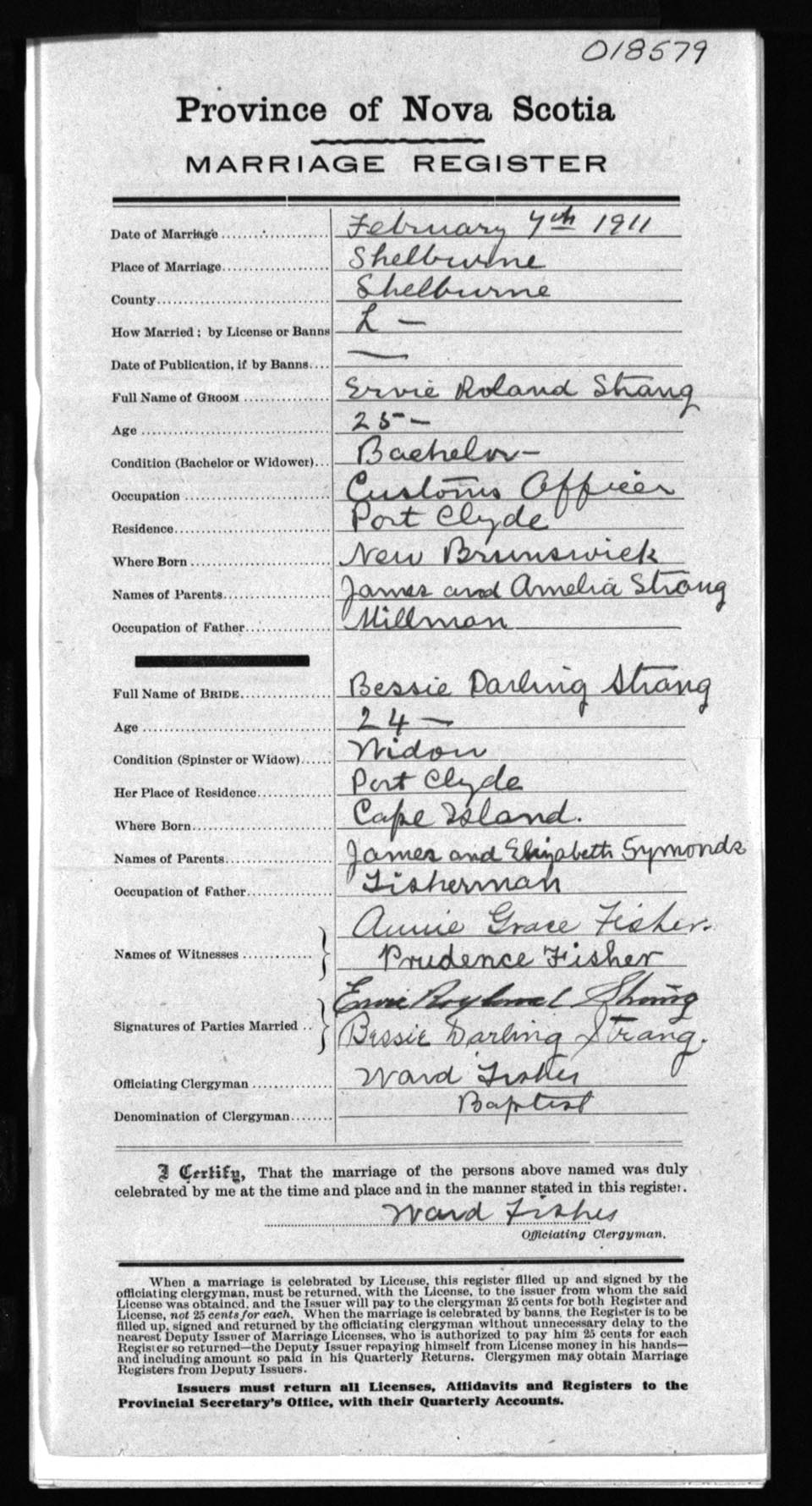 Registration: Year: 1911 number: 18579