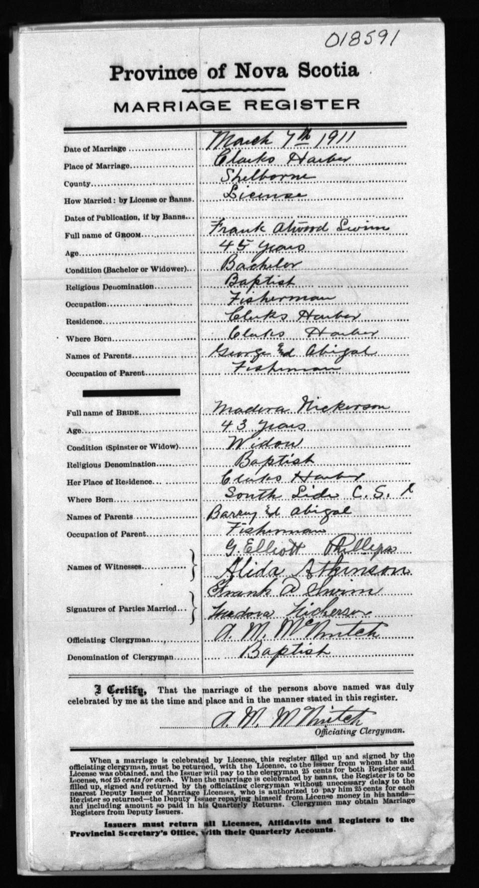 Registration: Year: 1911 number: 18591
