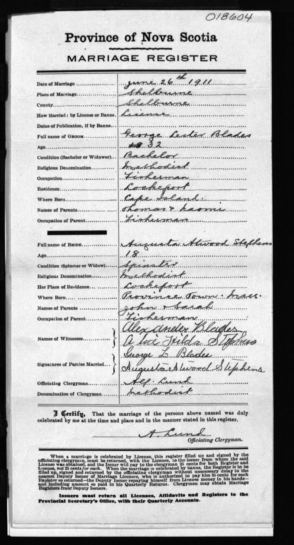 Registration: Year: 1911 number: 18604