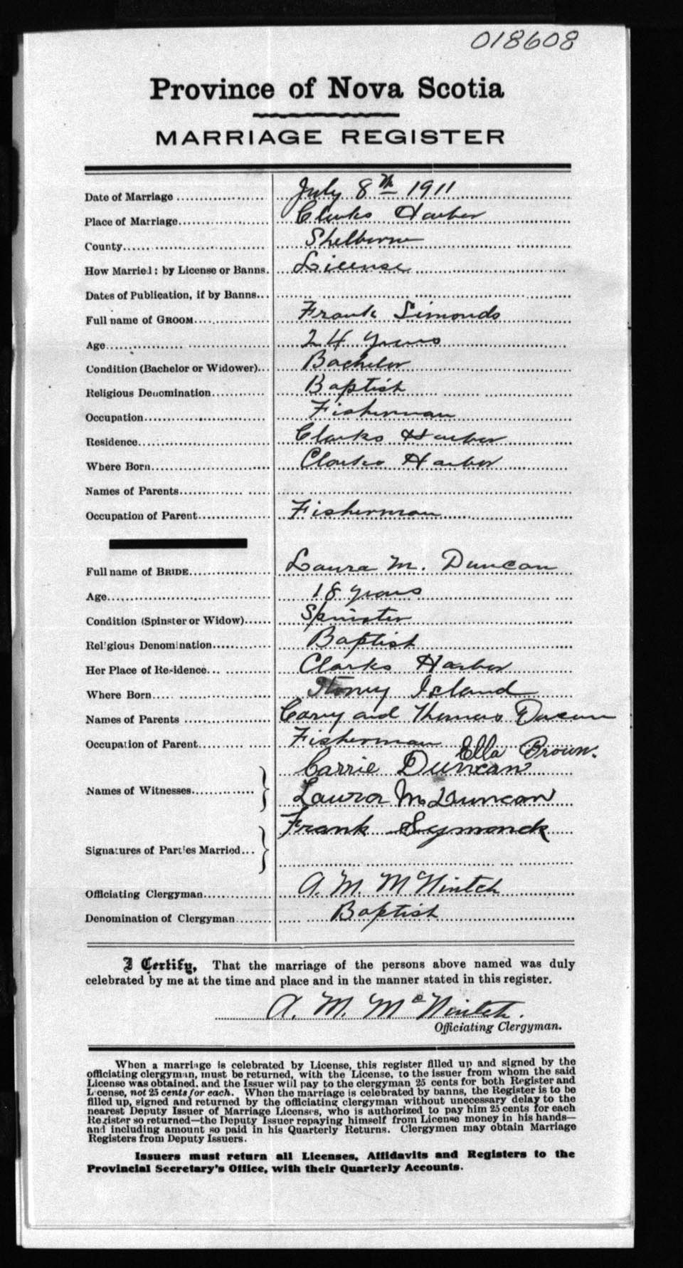 Registration: Year: 1911 number: 18608