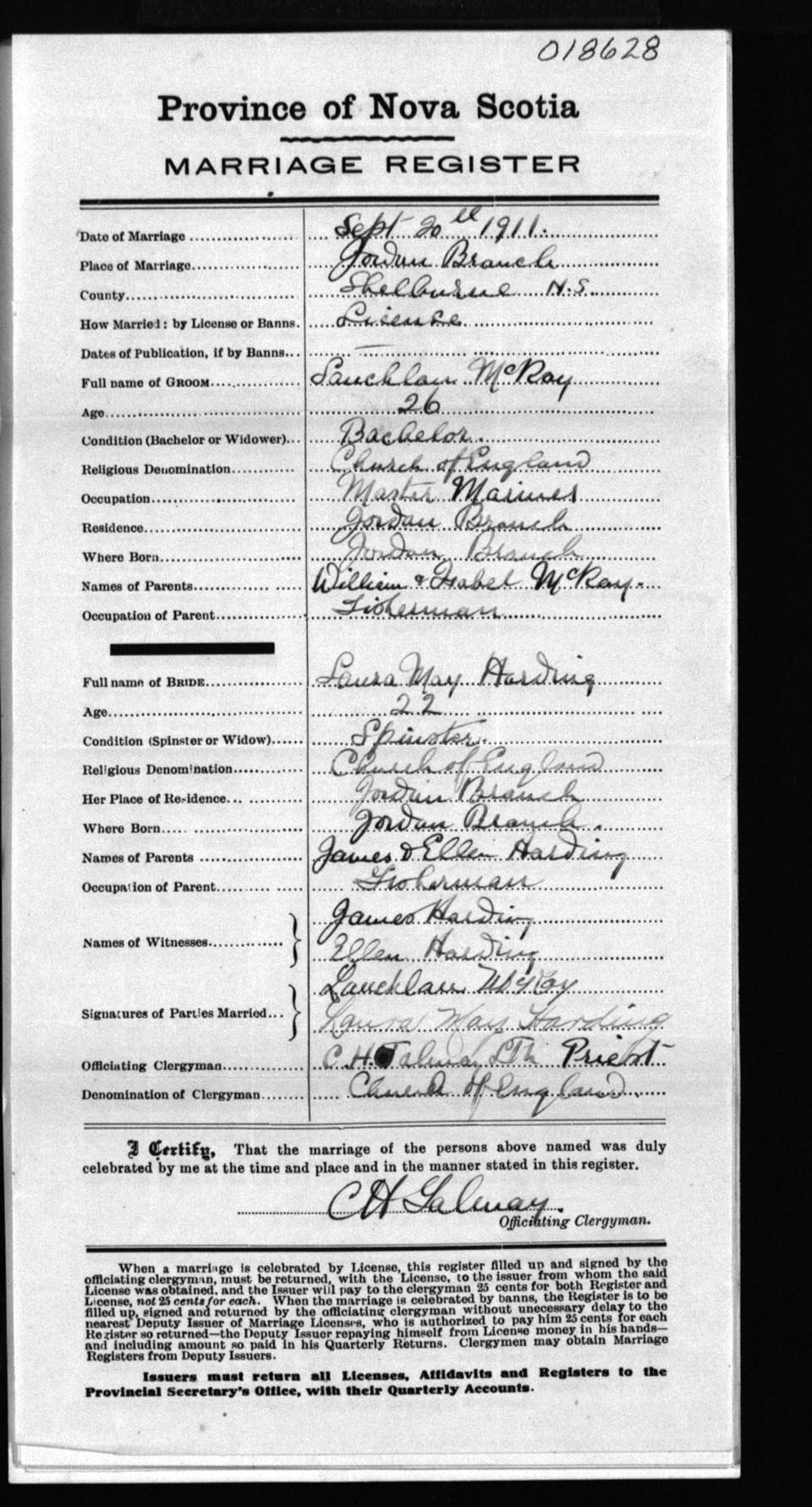 Registration: Year: 1911 number: 18628