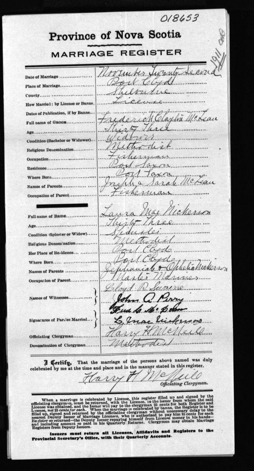 Registration: Year: 1911 number: 18653