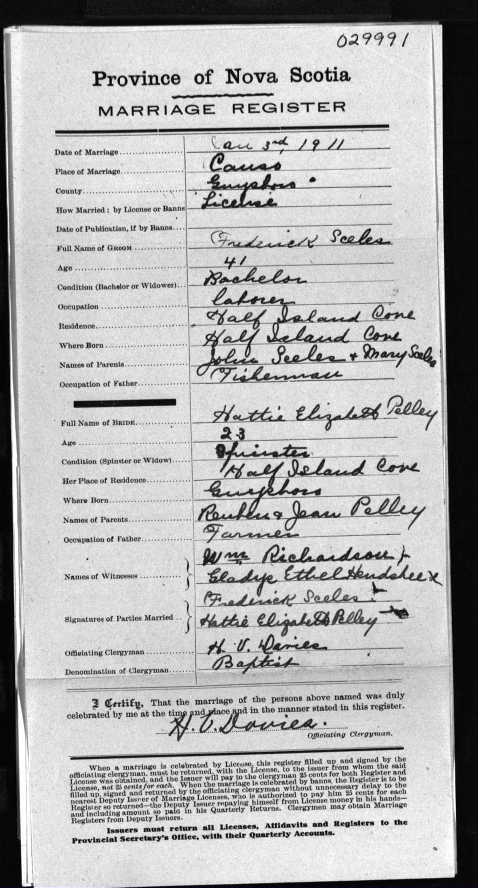 Registration: Year: 1911 number: 29991