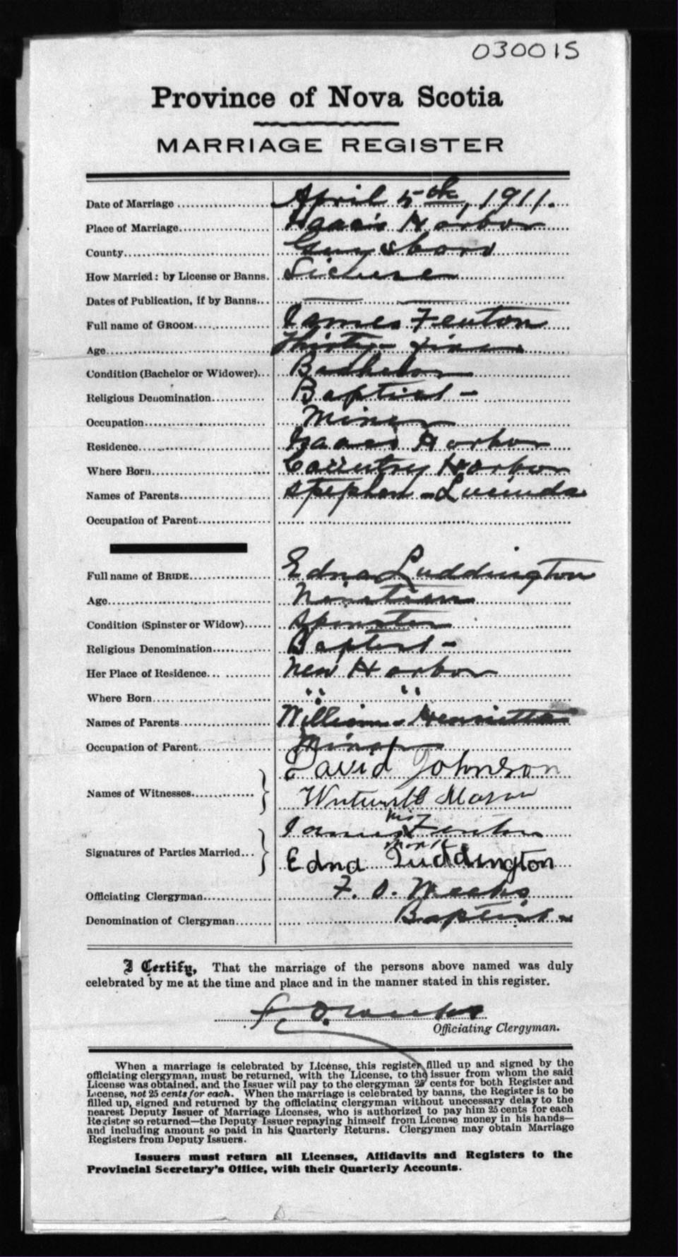 Registration: Year: 1911 number: 3015