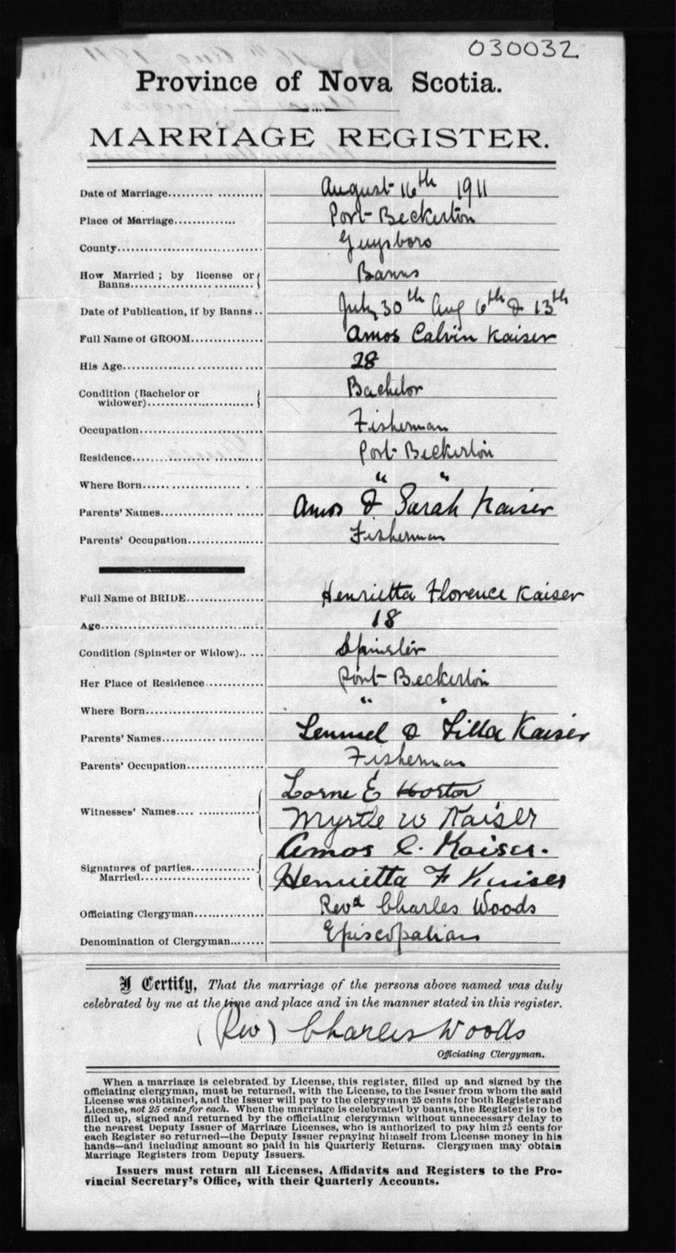 Registration: Year: 1911 number: 3032