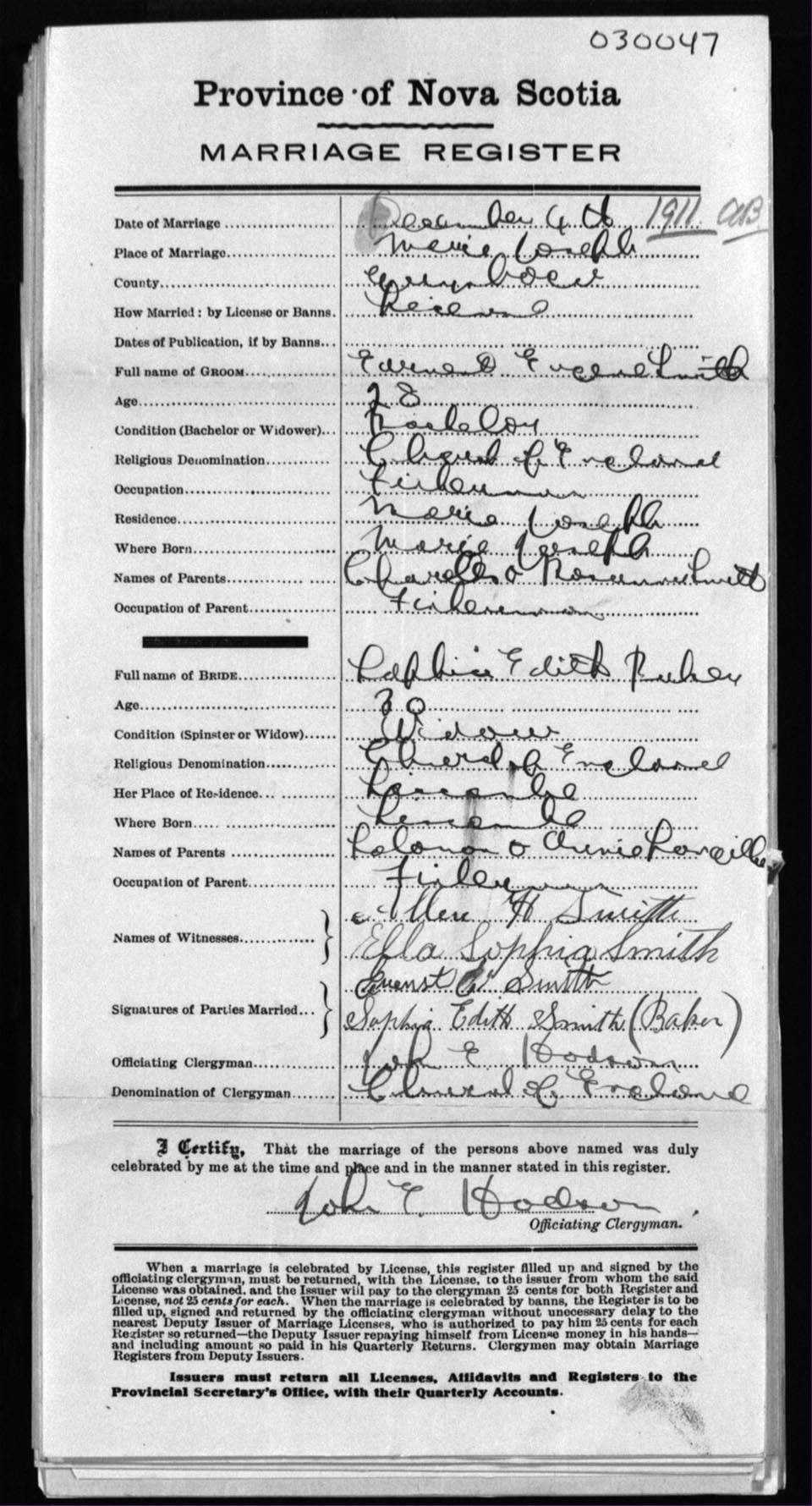 Registration: Year: 1911 number: 3047