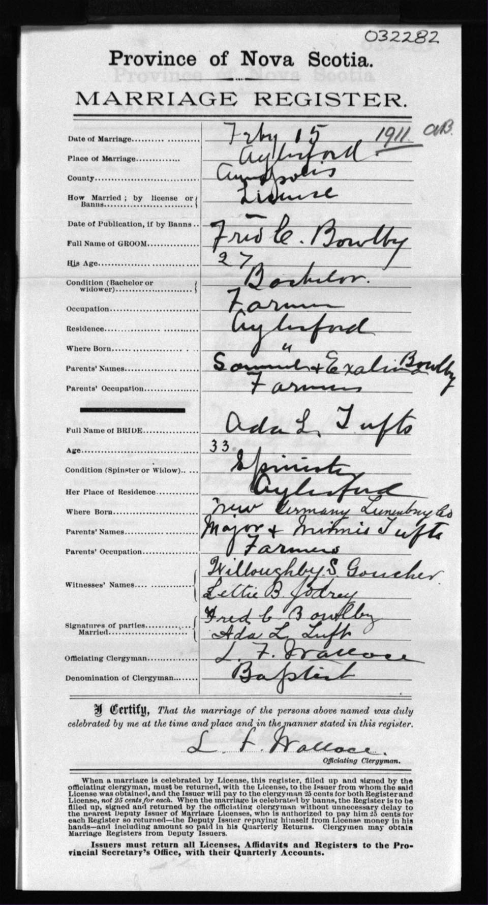 Registration: Year: 1911 number: 32282