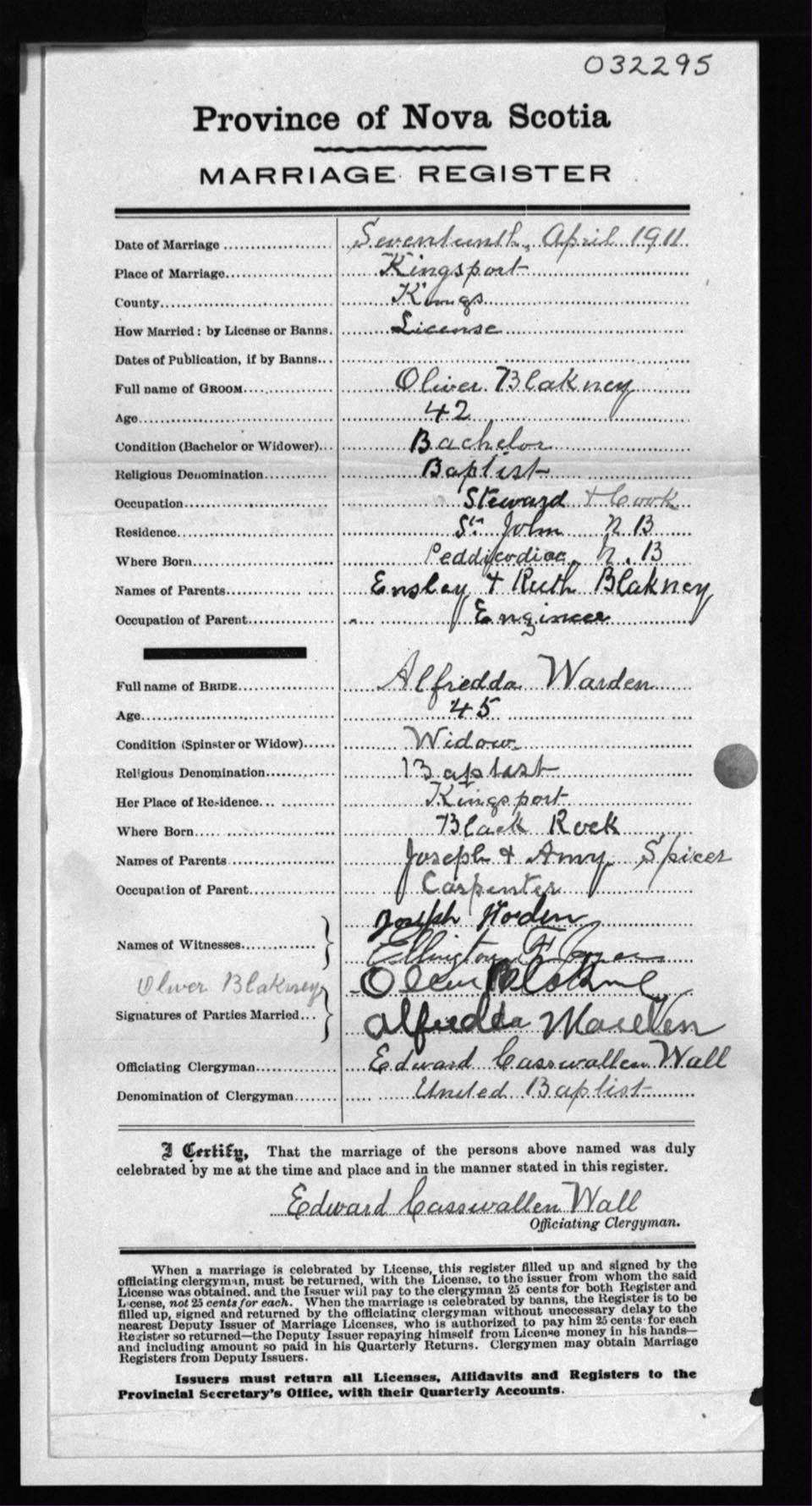 Registration: Year: 1911 number: 32295