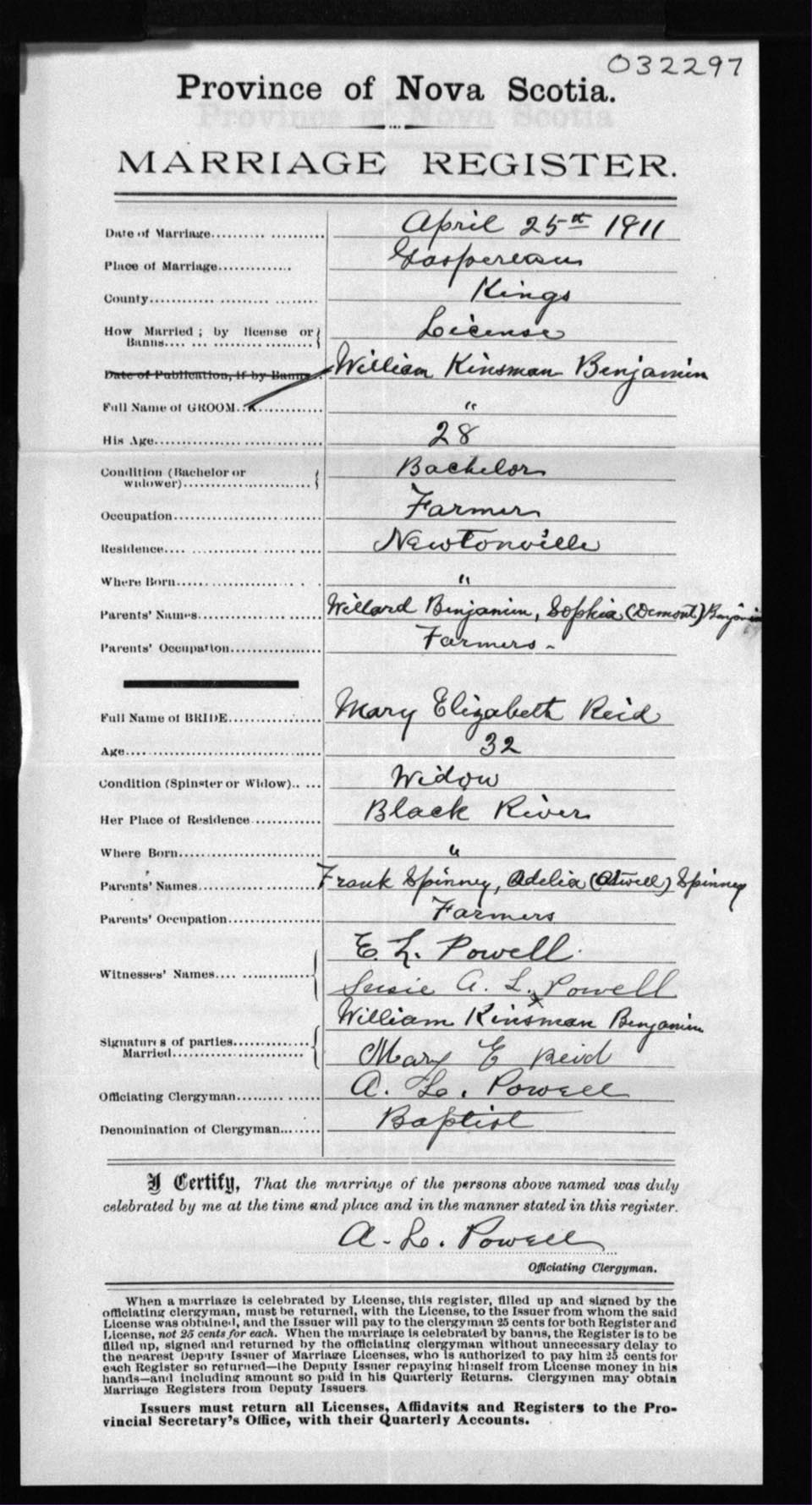 Registration: Year: 1911 number: 32297