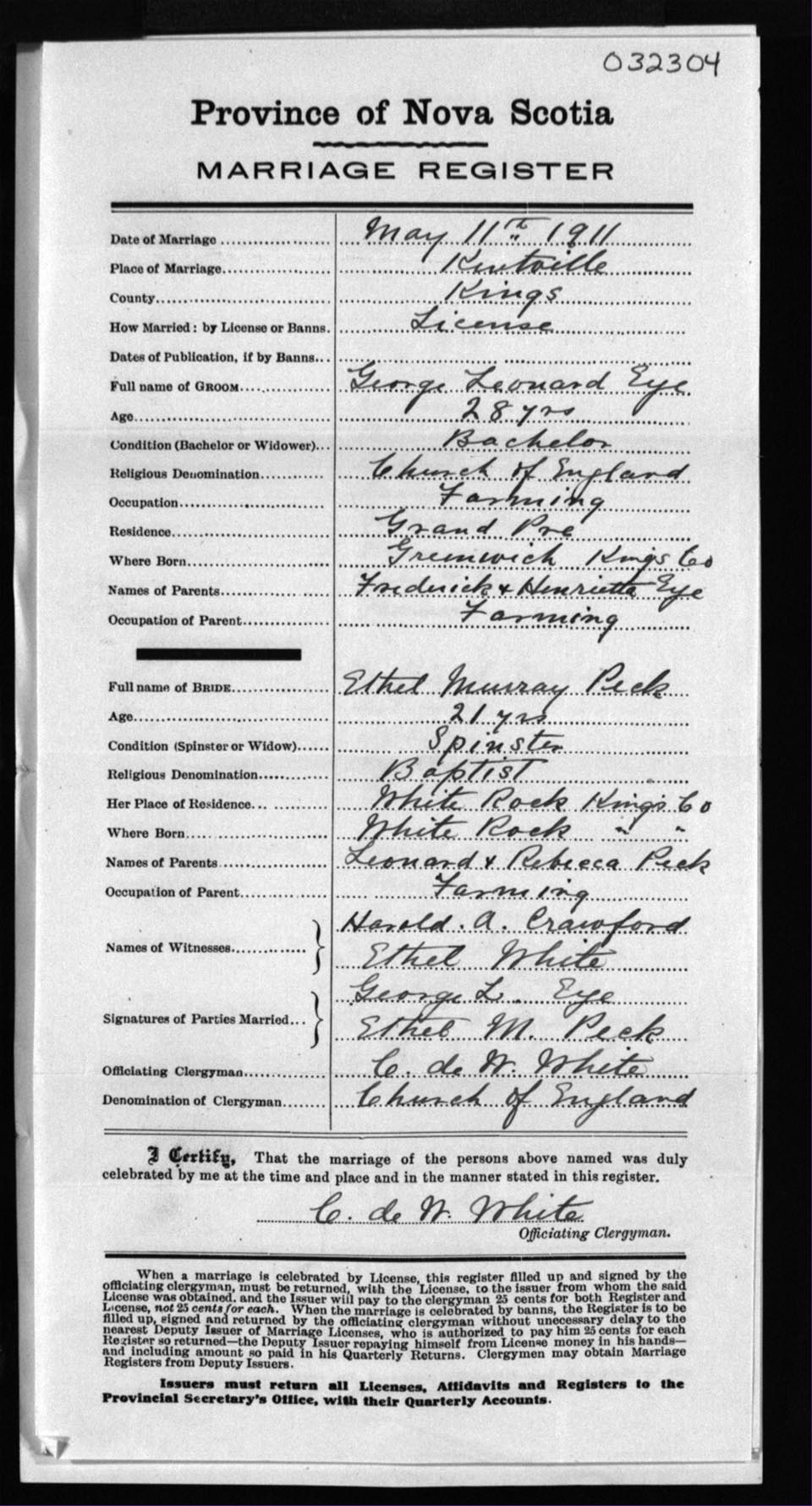Registration: Year: 1911 number: 32304